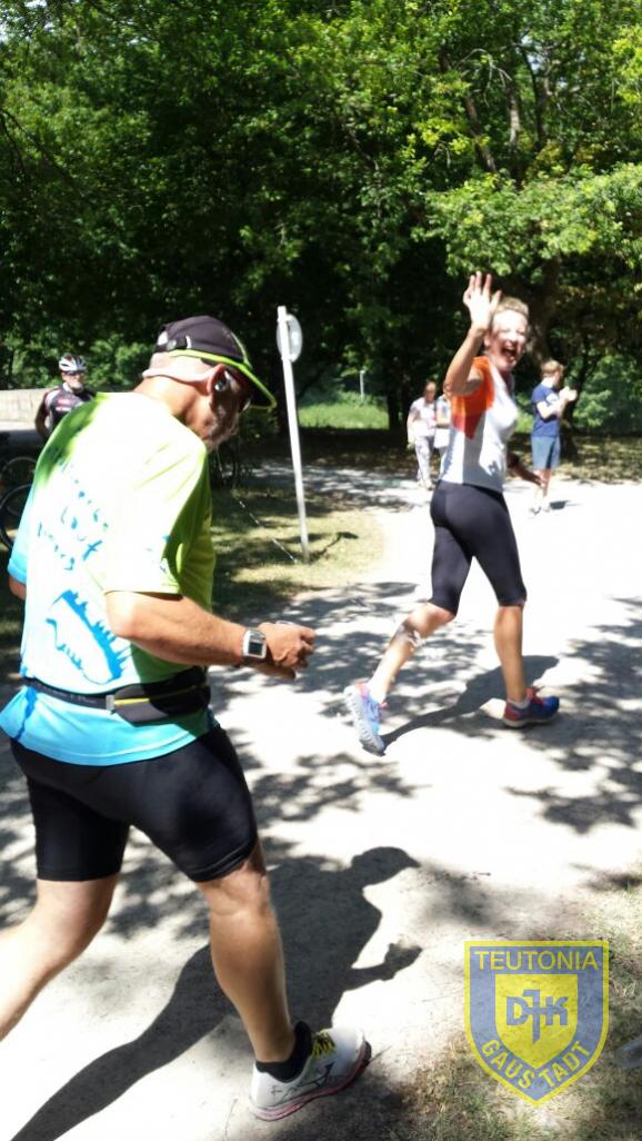 An der Buger Spitze angekommen wurden wir ordentlich von Micha und Sandra angefeuert, die von ihrer Rennradausfahrt im Steigerwald zurückkamen. Auf Höhe des Bootshauses gab uns Ottmar noch ein paar nette Worte mit auf den Weg. An der Markusbrücke führte die Strecke dann die kleine Treppe runter und wir unterquerten diese, bevor wir zum Endspurt ansetzten konnten. Leider war heute für alle etwas weniger drin, als unter normalen Bedingungen, die Strecke war heute richtig hart zu laufen.