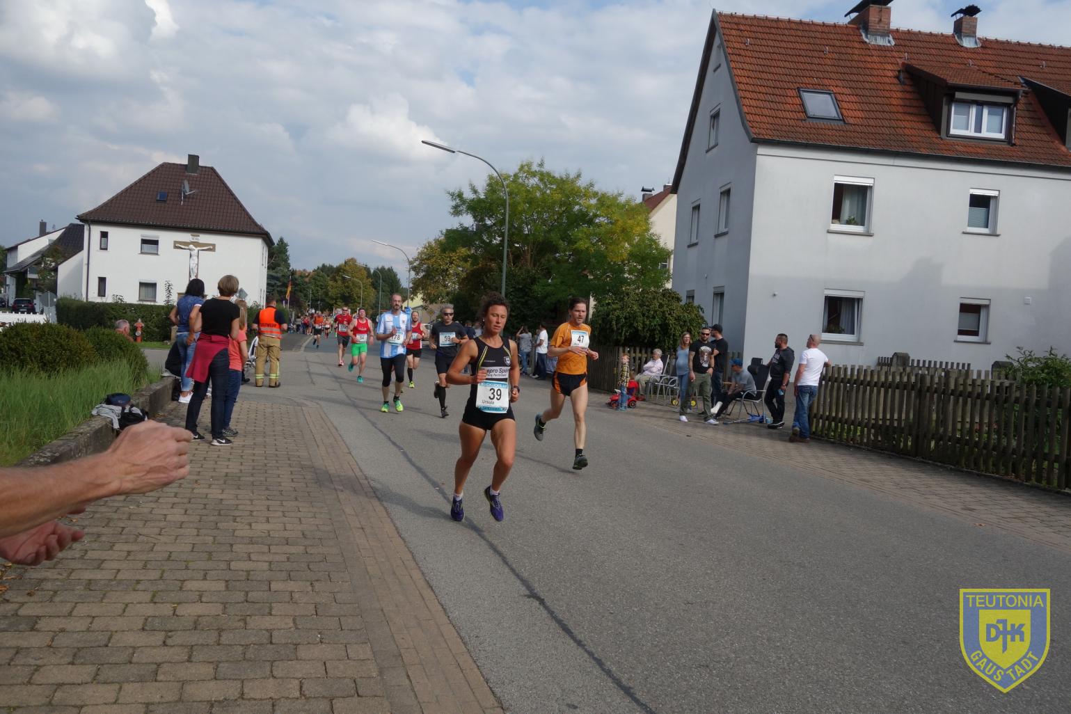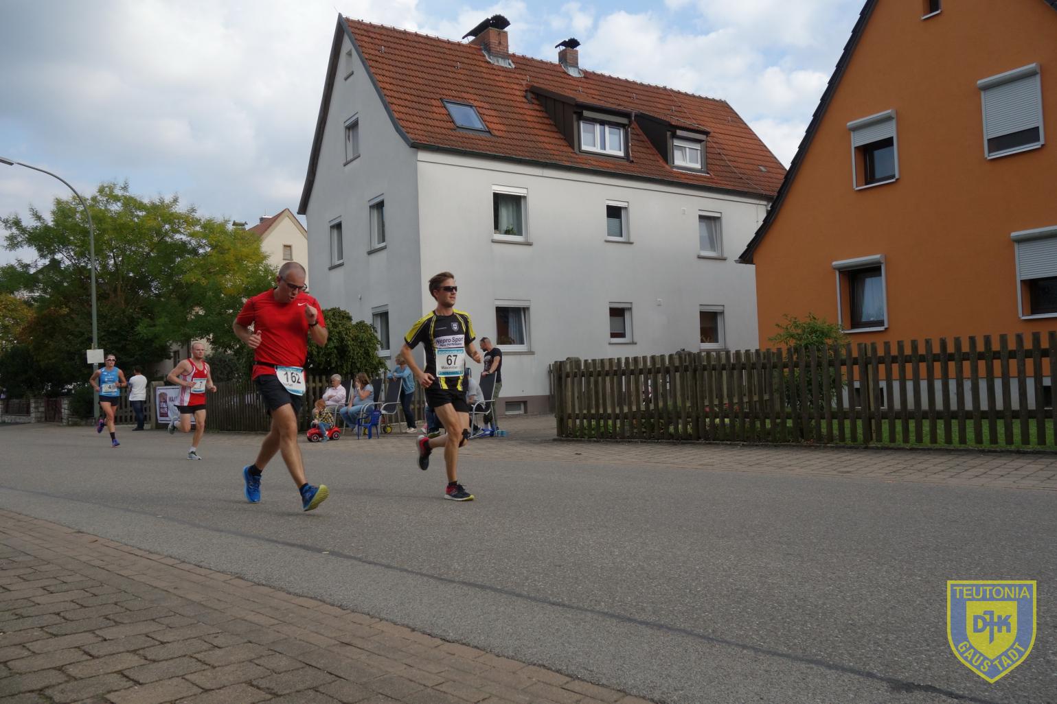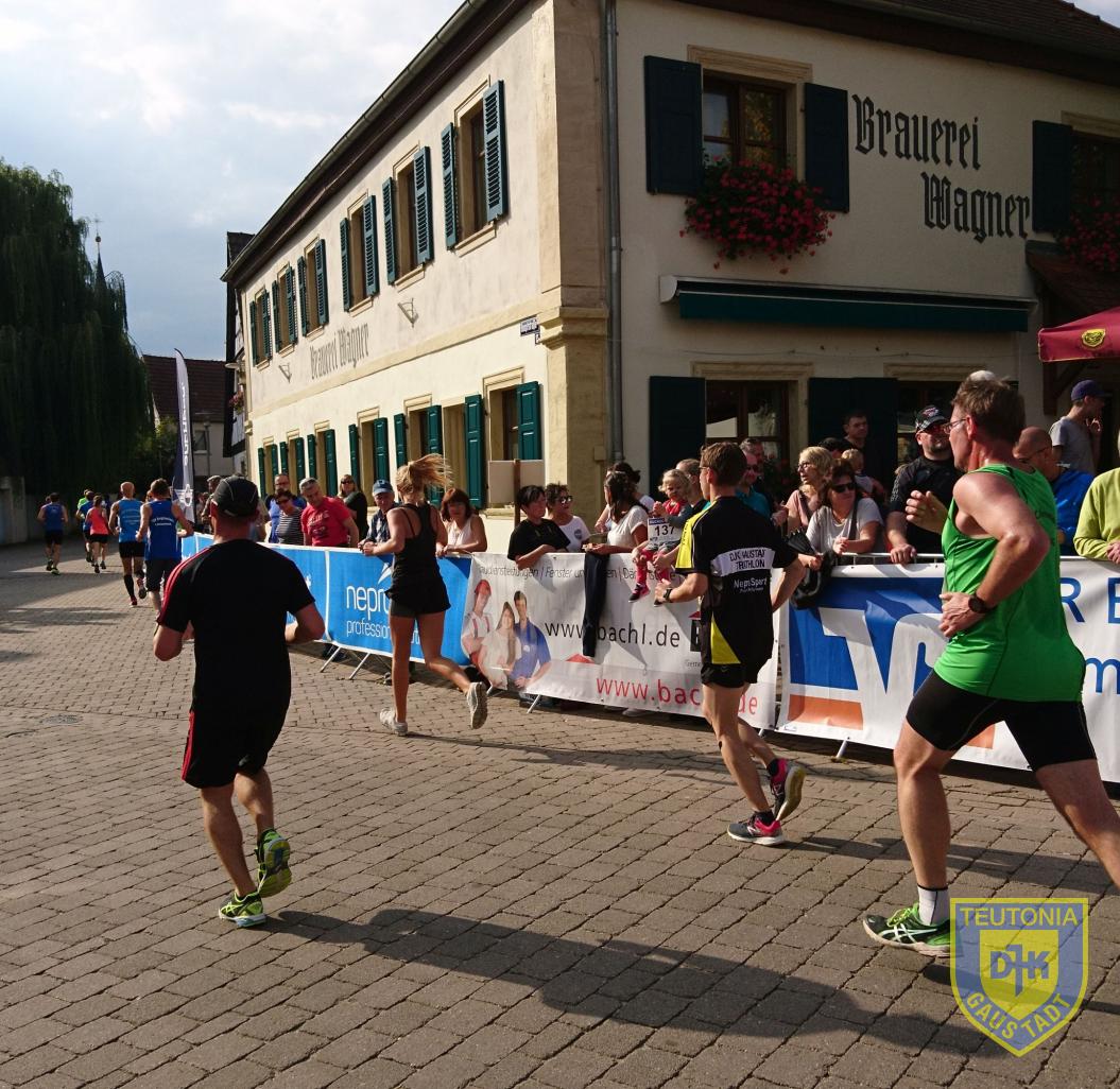Mein Plan (ob er nun gesund oder richtig ist?) ging ziemlich auf. Die ersten 2 Runden ziemlich Vollgas geben, Runde 3 bis in die 4. Runde etwas ausruhen und langsamer und auf der 5. Runde gucken, was noch geht. Ein kleiner Zielsprint war auch noch möglich. Und rum waren sie die 10km. Ich muss sagen ziemlich am Limit, da ich mich im Ziel erstmal auf den Boden setzten musste. Zur Strecke, sie war flach mit ein paar Kurven. Pro Runde, kurz vor Kilometer 1, gab es eine Verpflegungsstation. Auf der Zielgeraden standen Karl und Ursel, die uns fleißig angefeuerten, was mich sehr animierte und ich mein Tempo immer wieder etwas steigern konnte. Im Ziel gab es dann noch eine gute Verpflegung mit Keksen, Riegel, Obst usw.