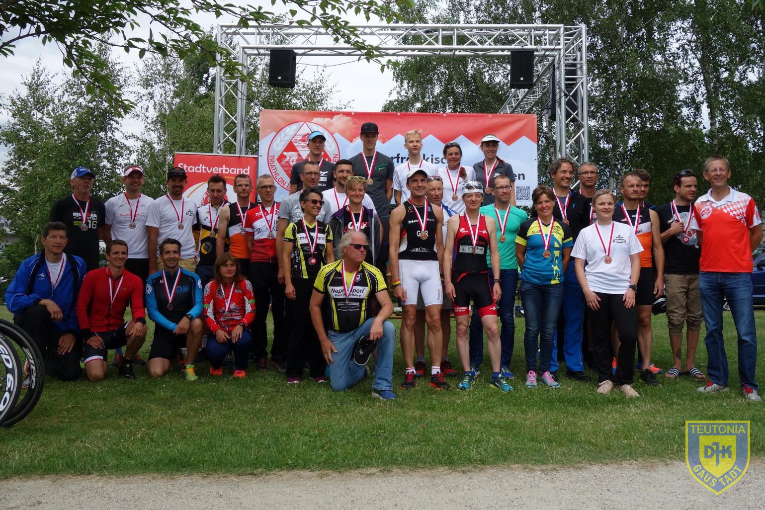 profilierten Radstrecke Bestzeit (1:13:06) und einen beachtlichen Vorsprung heraus. Mit nun drei Minuten Rückstand machte sich die starke Läuferin Krauss auf die Verfolgung, musste dann aber das Rennen nach der Hälfte der Distanz wegen muskulärer Beschwerden aufgeben. Timm siegte in starken 2:18:02 und sicherte sich zudem den Titel der oberfränkischen Meisterin. Auf den zweiten Platz lief Anna-Lena Klee (TSV Mellrichstadt,2:25:50) vor Valeria Kleiner (Team Autohaus Amon,2:26:06). Auch Anne Kirsten (DJK Gaustadt) zeigte ein couragiertes Rennen und belohnte sich in 2:28:20 als Geamtvierte mit dem oberfränkischen Titel in der W30. Die älteste aller Teilnehmerinnen, Maria Winter (DJK, 2:58:53), war in der Altersklasse 55 ebenfalls die Schnellste des Bezirks. Im Rahmen der Siegerehrung ehrten Bürgermeister Dr. Christian Lange und Sibylle Kretschmar vom Stadtverband Sport die Stadtmeister. Mit diesem Titel dürfen sich jetzt Matthias Türk und Annika Timm schmücken. Silber ging an Holger Link und Anne Kirsten, Bronze an Peter Dietz und Maria Winter.