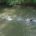 Beim Damenrennen sah es zunächst nach einem Zweikampf der beiden Favoritinnen Hanna Krauß (SSV Forchheim) und Annika Timm (IfA Nonstop Bamberg) aus. Krauß kam gleichzeitig mit den schnellsten Männern nach 19:03 Minuten aus dem Wasser, Timm benötigte drei Minuten länger. Dann allerdings zündete die Bambergerin den Turbo und fuhr auf der