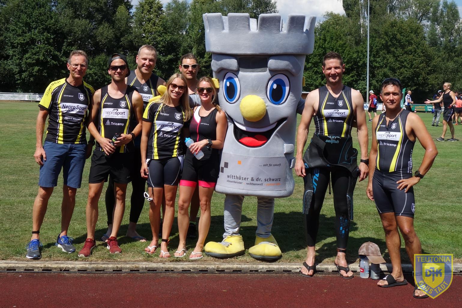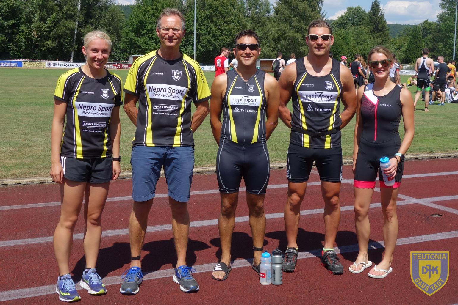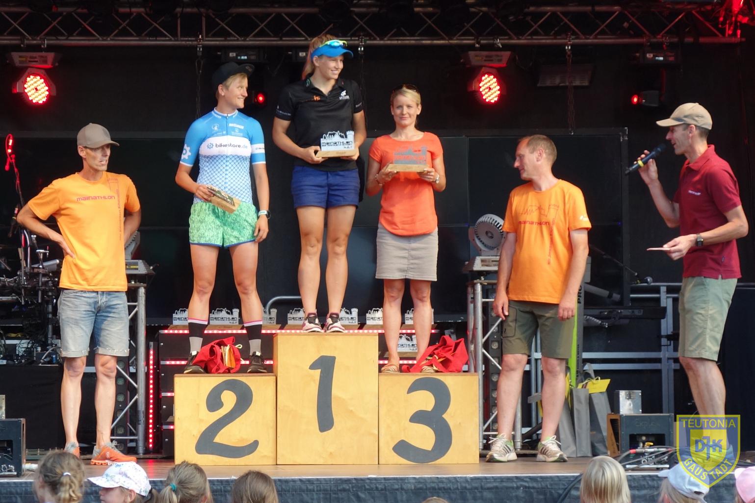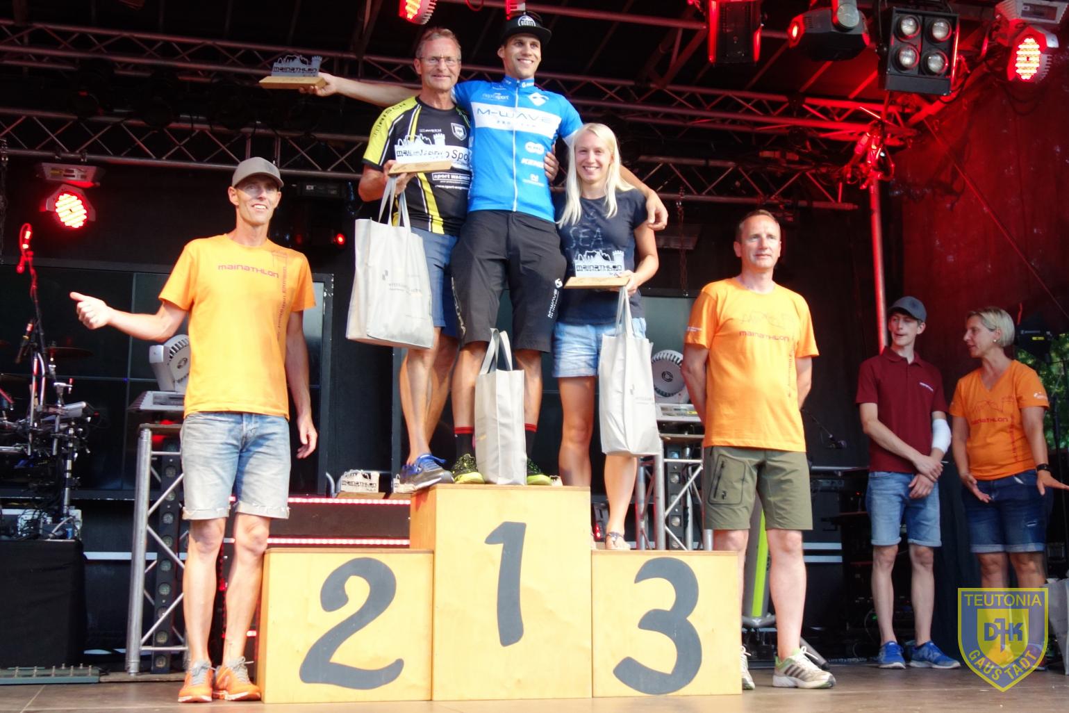 Schnellste Staffel war das Team DJK TEUTONIA GAUSTADT / M-WAVE-PRO-TEAM / TV SOTTRUM mit  Karl Schlichtig,  Uli Schmittlutz und Carina Brettmann. Karl Schlichtig stieg als 4. aus dem Wasser und übergab den Transponder an den erfahrenen MTB’ler Uli Schmittlutz, der in 50:30 die schnellste Radzeit erzielte. Er wollte eigentlich die 50-Minutengrenze unterbieten, aber die Hitze und der starke Gegenwind auf der Rückfahrt zum Stadion machten dies zunichte. An erster Stelle liegend startete Carina Brettmann, die extra aus Sottrum bei Bremen anreiste, auf die anspruchsvolle Laufstrecke hoch zur Wallburg. Sie ließ sich den Sieg nicht mehr nehmen und verbesserte den Streckenrekord der MIX-Staffel um über eine Minute als sie nach 1:35:59 über die Ziellinie lief.