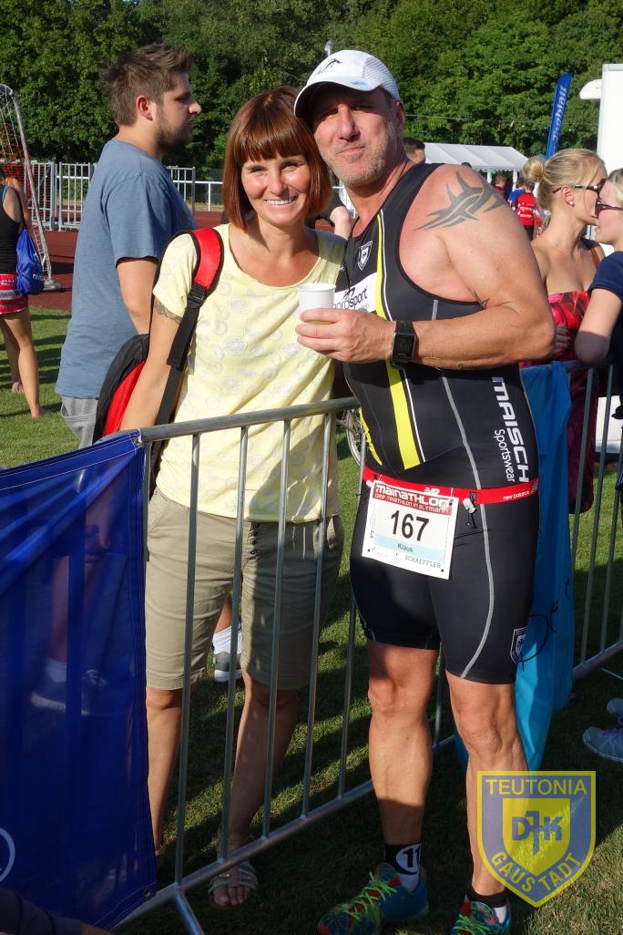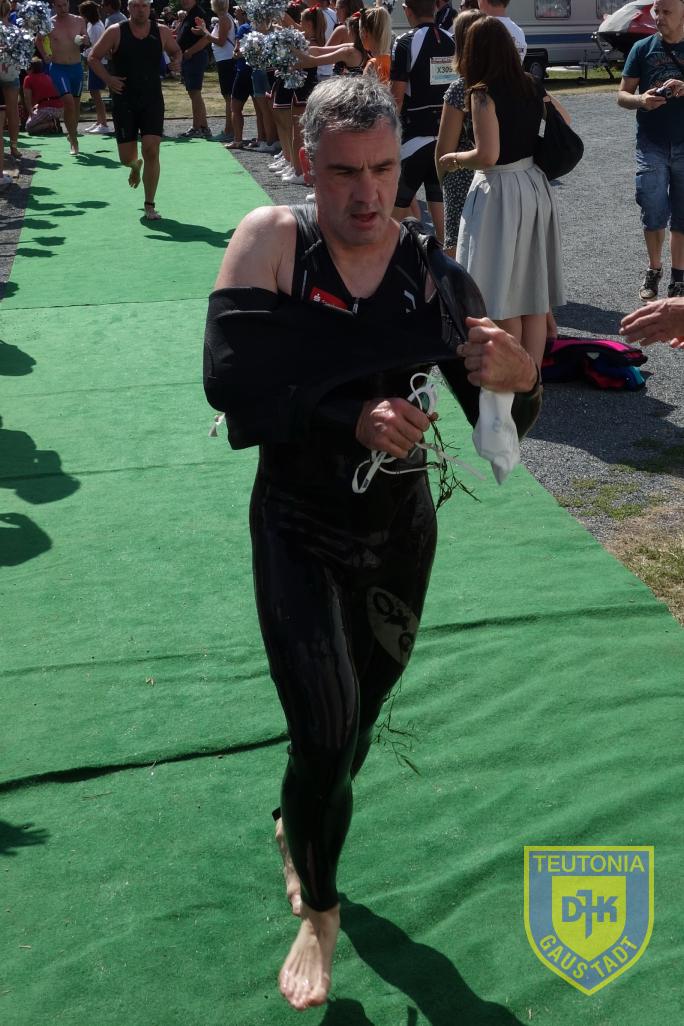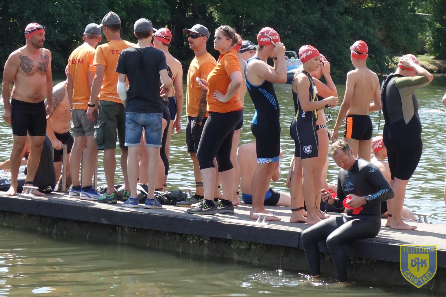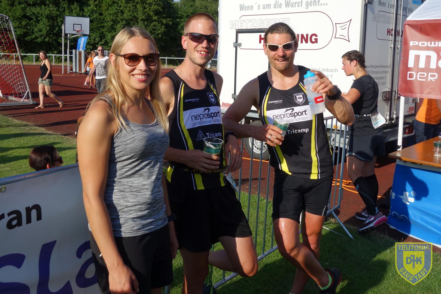 Schnellste Staffel war das Team DJK TEUTONIA GAUSTADT / M-WAVE-PRO-TEAM / TV SOTTRUM mit  Karl Schlichtig,  Uli Schmittlutz und Carina Brettmann. Karl Schlichtig stieg als 4. aus dem Wasser und übergab den Transponder an den erfahrenen MTB’ler Uli Schmittlutz, der in 50:30 die schnellste Radzeit erzielte. Er wollte eigentlich die 50-Minutengrenze unterbieten, aber die Hitze und der starke Gegenwind auf der Rückfahrt zum Stadion machten dies zunichte. An erster Stelle liegend startete Carina Brettmann, die extra aus Sottrum bei Bremen anreiste, auf die anspruchsvolle Laufstrecke hoch zur Wallburg. Sie ließ sich den Sieg nicht mehr nehmen und verbesserte den Streckenrekord der MIX-Staffel um über eine Minute als sie nach 1:35:59 über die Ziellinie lief.