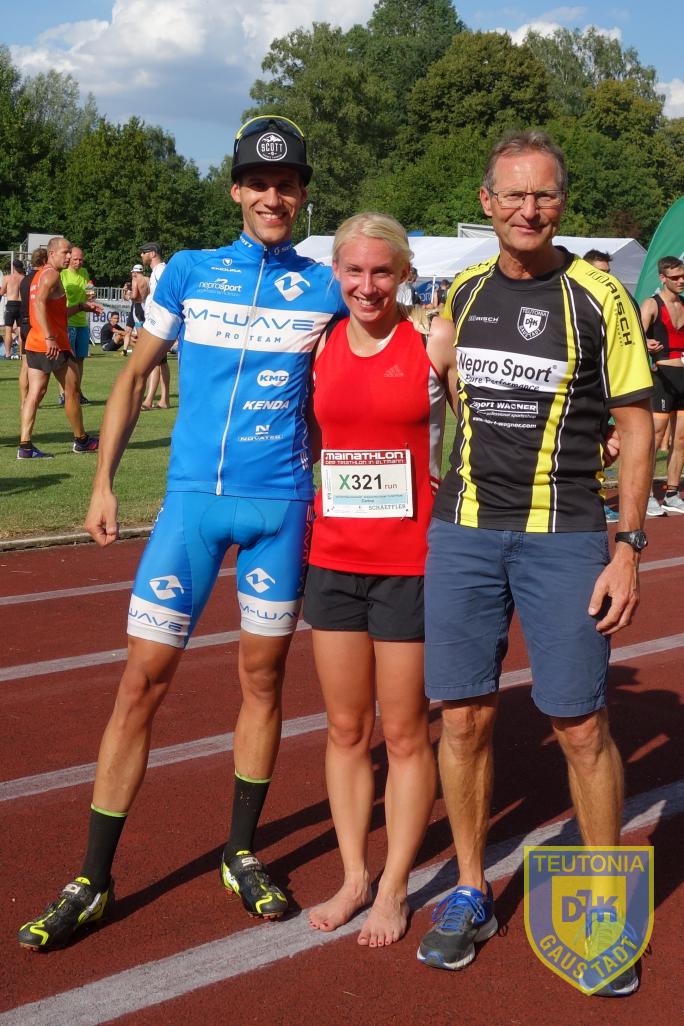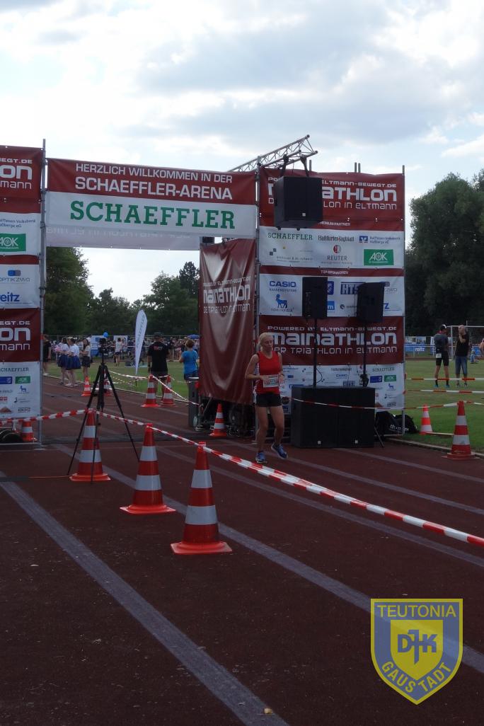 Beim dritten Mainathlon, dem Breitensport-Triathlon in Eltmann gab es mit 230 Einzelstartern und 130 Staffeln einen neuen Teilnehmerrekord. Mehrere Tausend Zuschauer sorgten für eine tolle Stimmung entlang der Schwimm-, Rad- und Laufstrecke und im Zielbereich. Bei sommerlichen Temperaturen wurden um 15 Uhr die Männer auf die 750m lange Schwimmstrecke im Yachthafen geschickt. Eine Viertelstunde später starteten die Frauen. 21,9 Grad betrug die Wassertemperatur und so war es den Teilnehmern frei gestellt, ob sie mit oder ohne Neoprenanzug schwammen. Die 23 km lange Radstrecke war mit einigen giftigen Anstiegen gespickt, die angestaute Hitze machte den Teilnehmern an den Bergpassagen richtig zu schaffen. An den vielen Hotspots an der Strecke feuerten die Zuschauer fleißig an.  Der abschließende 7,3 km lange Lauf führte über Treppen hinauf zur Wallburg, über Feldwege und durch das Neubaugebiet von Eltmann zurück ins Ziel.