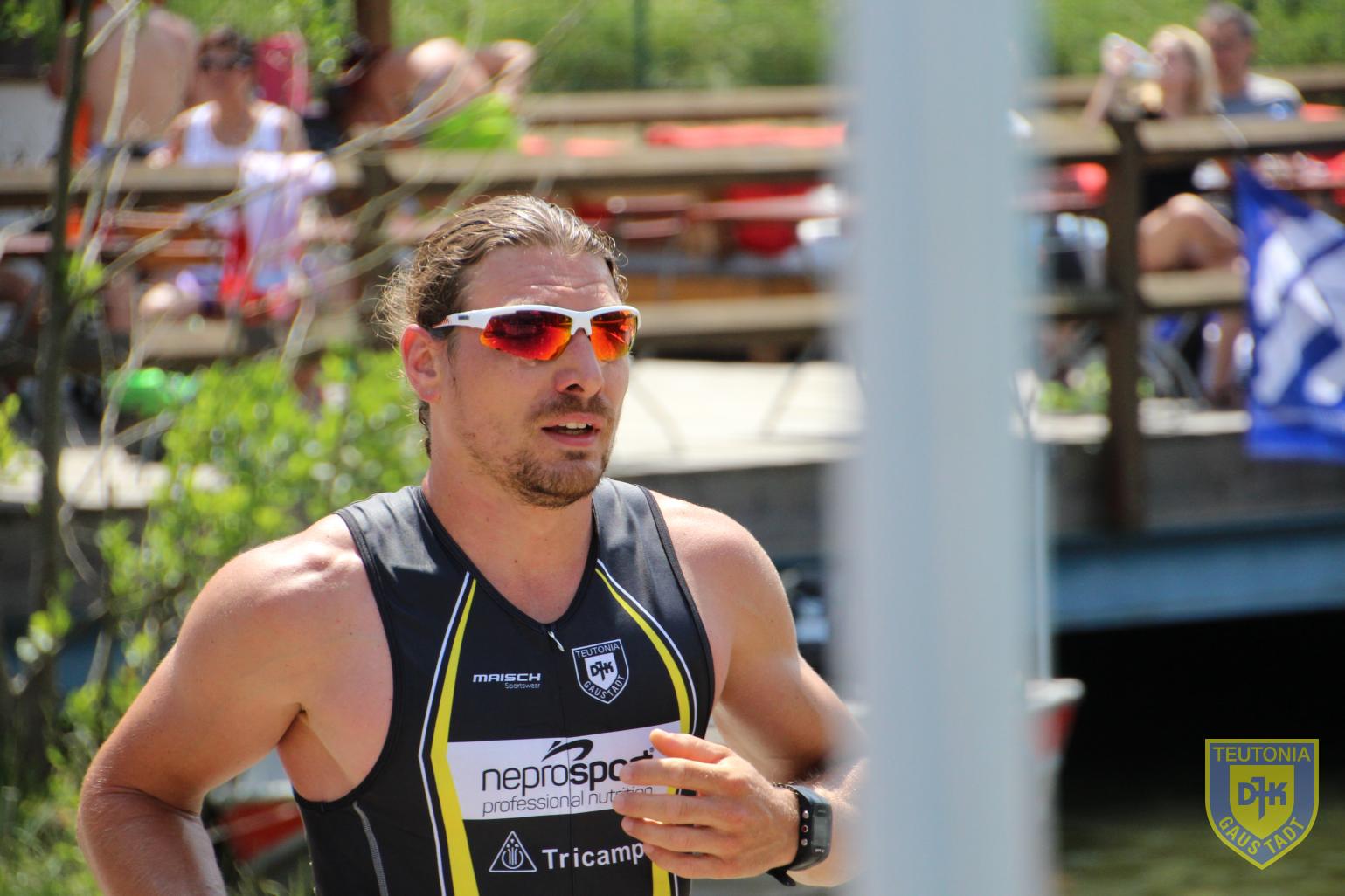 Um 10:30 war der Start der Kurzdistanz. In der ersten Disziplin mussten 2 Runden im See absolviert werden 1500 Meter (Sprint 1 Runde). Wegen des ca. 26° warmen Sees gab es Neo Verbot.