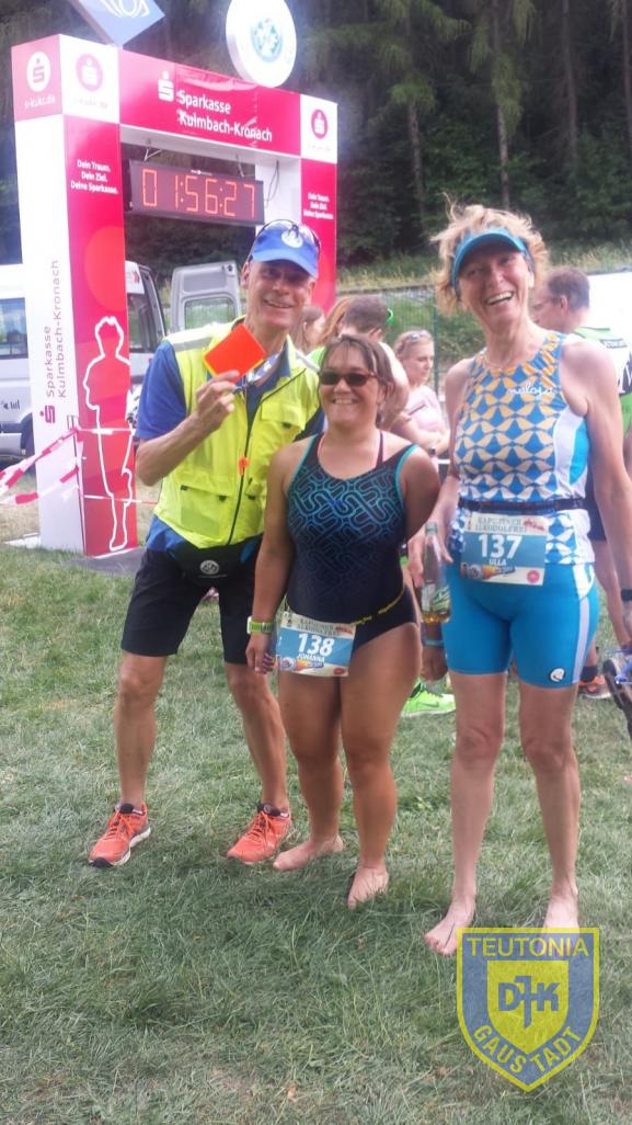 Spontan habe ich mich ein paar Wochen vorher für die Olympische Distanz angemeldet, die dieses Jahr neu im Programm des Kapuziener Alkoholfrei Kulmbach ist. Dabei waren auch als Staffel für die Kurz Distanz Jens und Silvia als 2er Staffel und Ruth, Martin, Sandra als 3er Staffel. Johanna und Ulla absolvierten die Sprint Distanz.