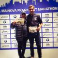 Das Wochenende startete am Samstag um 10:00 Uhr vor der Festhalle Frankfurt mit dem 5 km Brezellauf. Ohne Zeitmessung ging es in lockerem Schnitt durch Frankfurt entlang des Mains zurück zum Messegelände. Im Ziel gab es eine Frankfurter Brezel für alle zum Essen und dank des Sponsors Interair auch zum Umhängen, allerdings nicht aus Teig, sondern aus Metall. Anschließend stand die Abholung der Startunterlagen an. Hier haben wir uns dann mit William getroffen, der direkt aus Bamberg angereist war. Auf der Messe gab es noch die Möglichkeit für ein gemeinsames Foto mit sehr sympathischen Laufvorbildern und ein kurzes Pläuschchen mit Gabi und Dieter vom DJK LC Vorra Laufclub, die ebenfalls beide am Start am Sonntag waren. Am Abend sind Sandra, William und ich gemeinsam Essen gegangen und haben den Abend entspannt ausklingen lassen. Ich erwähnte weiter oben bereits die perfekten Rahmenbedingungen, bei denen ich die geschenkte Stunde der Zeitumstellung nicht unerwähnt lassen möchte. Herrlich, 9 Stunden Schlaf!