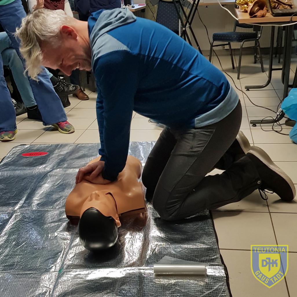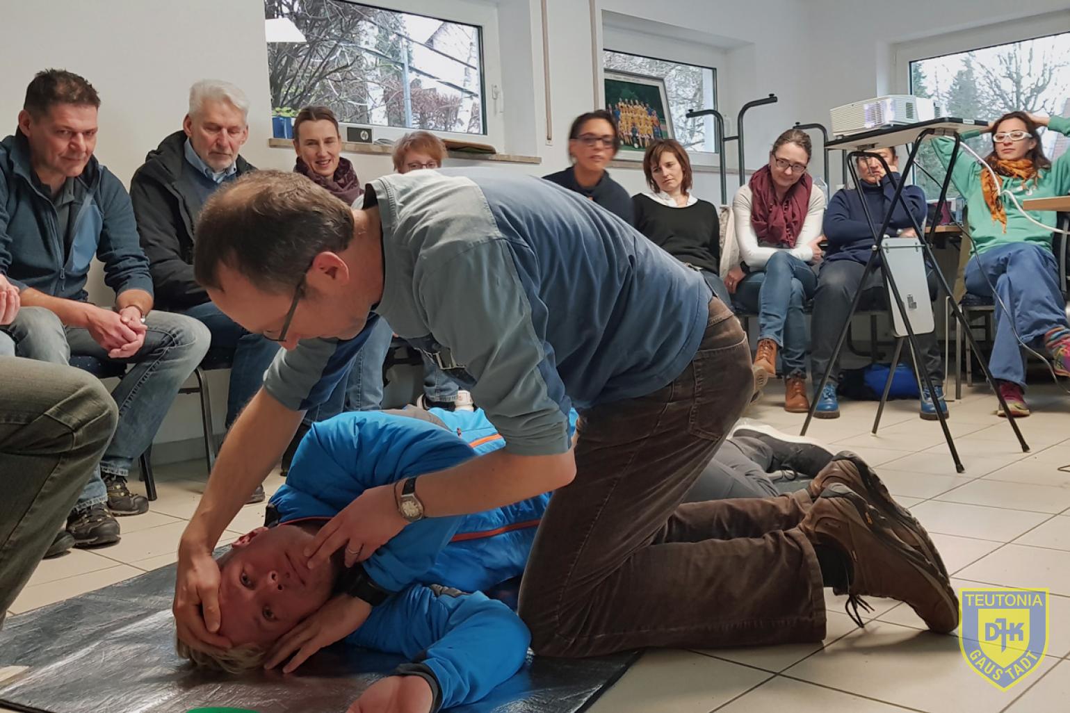 Am zweiten Januarwochenende führten wir im Vereinsheim einen Erste-Hilfe-Kurs durch. Wir legen Wert auf gut ausgebildete Übungsleiter und Verantwortliche und freuten uns, dass wir von unserem Mitglied Bernd Eichberger die Erste-Hilfe-Ausbildung erhielten. Da sich alle Teilnehmer gut kannten, war es auch für Bernd angenehm die Themen mit uns durchzuarbeiten. Es fand sich immer ein Demonstrationsopfer und bei der Rettung gab es auch viel Spaß in der Gruppe. Nun haben wir unser Wissen über die stabile Seitenlage, HLW (Herz- / Lungenwiederbelebung) und Verbände anlegen wieder aufgefrischt. Hoffentlich müssen wir das Erlernte nie anwenden, aber wenn der Fall eintritt, sind wir gut vorbereitet. Im Wasser (durch unsere Rettungsschwimmerausbildung) und an Land können wir nun bei Notsituationen helfen.