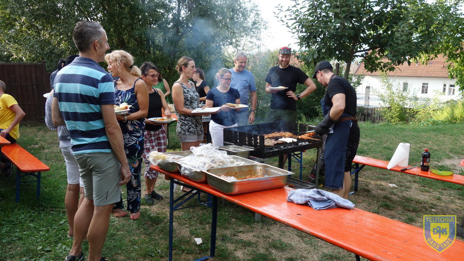 Mit dem Wetter haben wir immer großes Glück und so fanden sich bei sommerlichen Temperaturen 100 Mitglieder und deren Angehörige im Garten des DJK-Hüttlas ein. Nach einer kurzen Ansprache von Karl und Jens startete gegen 19 Uhr die Schlacht am Buffet. Steaks, Bratwürste, Hähnchenspieße und gebackener Schafskäse standen reichlich zur Auswahl. Dazu noch verschiedene Salate und selbst gebackenes Brot. Nach und nach füllten sich die Plätze und zu abendlicher Stunde gab es für die Kinder noch eine Überraschung.