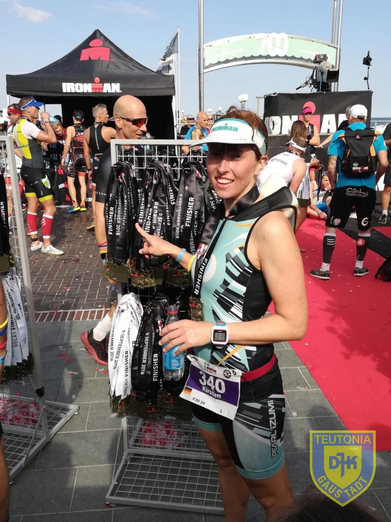 Beim Radfahren konnte ich mir auf den 90km einen guten Vorsprung mit einem Schnitt von 35,3 km/h sichern. Auch das anschließende Laufen sollte an diesem Tag gut funktionieren. Einzige Hürde war der Klünderberg mit zwischenzeitlich 11% Steigung welcher 4mal zu überlaufen war. Dabei rutschte ich auf Rang 2 meiner Altersklasse zurück. Dies erfuhr ich jedoch erst im Ziel, da die Siegerin meiner AK 20min nach mir ins Wasser gegangen ist und den Halbmarathon mit einer 4:00 Pace absolvieren konnte. Starke Leistung. Schneller war an diesem Tag nur Laura Philipps unter den Damen.