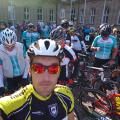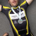 Dann war es soweit, es ging endlich los. Direkt durch die gesperrte Innenstadt von Stuttgart ging es raus Richtung Osten. Der Flache Kurs und das Fahren in einer größeren Gruppe ermöglichte eine irre Geschwindigkeit, 45 km/h waren locker drin, teilweise trat ich sogar über 50 km/h ohne größere Anstrengung. Aber mir war schon klar, dass das nicht ewig so weiter gehen würde, schließlich warteten ja noch rund 1300 Höhenmeter auf mich. Einfahrt in einen zweispurigen Tunnel, das einzige was man hörte war das irre Summen und Surren hunderter Laufräder auf dem Asphalt, Gänsehaut-Moment. Nach knapp 25 km dann die erste Steigung, die aber dann gefühlt auch schnell bewältigt war. Ich hatte mir die Strecke zwar mehrfach angeschaut und wusste auch, wo ich langfahren würde, aber während des gesamten Rennens hatte ich nur in wenigen Momenten wirklich eine Ahnung, wo ich jetzt genau war. Der Tunnelblick und der Rausch waren größer als gedacht. Durch Kirchheim unter Teck hindurch ging es dann weiter Richtung Norden durch das Nassachtal Richtung Schorndorf. Ziemlich langgezogene Steigung, bei der es auch über den höchsten Punkt der Tour ging. Bei der Abfahrt passierte es dann doch: An einer Kreuzung innerorts hab ich mich arg verschätz mit der Geschwindigkeit und bin dann nur noch scharf bremsend geradeaus gefahren. Glücklicherweise war die Straße hier nicht zu Ende und ich kam mit einem leichten Schrecken davon. Die Kette nach der Abfahrt fast ganz rechts dauerte es einige Momente, bis ich wieder in den Tritt gekommen bin. Kurzer Blick auf die Uhr: bereits 80 km in den Beinen. Ab diesem Moment ging der Kampf mit mir selbst los. Ich zählte jeden einzelnen Kilometer. Nach etwa 90 km wurde es dann richtig hart: Für eine Autobahnüberführung ging ich kurz aus dem Sattel und wollte im Wiegetritt hoch, als ich merkte, dass meine Oberschenkel begannen, zuzumachen. Na super, ich hatte immer noch im Hinterkopf, dass mich der Pragsattel auf den letzten Kilometern erwarten würde. Mit ordentlich Kraft zu treten war also nicht mehr drin. 25 km vor dem Ziel zeigte die Straßenbeschilderung Stuttgart nach links, Ludwigsburg nach rechts. Und das gesamte Fahrerfeld bog nach rechts ab! Mittlerweile schmerzten die Beine auch beim normalen Treten. Irgendwann kam jedoch das Ortsschild von Stuttgart und ich versuchte so gut es geht mit zu schwimmen. Immer wieder überholten mich „Züge“, ich hatte aber nicht ansatzweise das Gefühl, hier aufspringen zu können. Ich kam mir vor wie in einer alten rostigen Draisine. Für den Bruchteil einer Sekunde überlegte ich, kurz abzusteigen und mich an den Straßenrand zu legen. Aber der Gedanke verschwand schnell wieder. Weiter geht’s, nur noch wenige Kilometer! Und dann kam er, der Pragsattel! Ein gefühlt 25 % nicht enden wollender Anstieg. Irgendwann muss es doch bergab gehen? Entschädigt wurden die Teilnehmer für eine schöne Aussicht von oben auf die Stuttgarter Innenstadt, für die ich in diesem Moment aber weiß Gott keinen Blick hatte. Die letzten Kilometer. Es ging bergab, vorbei an der Universitätsbibliothek, mein Arbeitsplatz. Dann konnte es ja nicht mehr weit sein. Die Schilder kündigten es an, nur noch 500 Meter. Einige Fahrer um mich herum setzten zum Zielsprint an. Für mich überhaupt nicht dran zu denken, ich überlege mir, wie ich vom Rad kommen soll ohne zu krampfen. Vielleicht einfach seitlich an die Bande fallen lassen. Die letzten Meter, die Zuschauer stehen entlang der Strecke und machen ordentlich Krach, Sandra ruft mich und winkt mir zu. Schließich die Ziellinie: Geschafft, nach 3:41 h war die 117,5 km lange Strecke bezwungen. Die ca. 500 Meter lange Ausrollzone brauche ich nur wenige Meter, nichts geht mehr. Absteigen ging dann überraschender Weise doch ganz gut. Nach dem Empfang der wohlverdienten Medaille wollte ich mich nur noch hinlegen. Was für eine Erfahrung, ich gestehe mir ein, die Sache vielleicht doch ein klitzeklein wenig unterschätzt zu haben. Sandra findet mich und versorgt mich mit einem alkoholfreien Weizen. Der Schmerz lässt nach und nach ein paar Minuten kann ich wieder einigermaßen gehen.