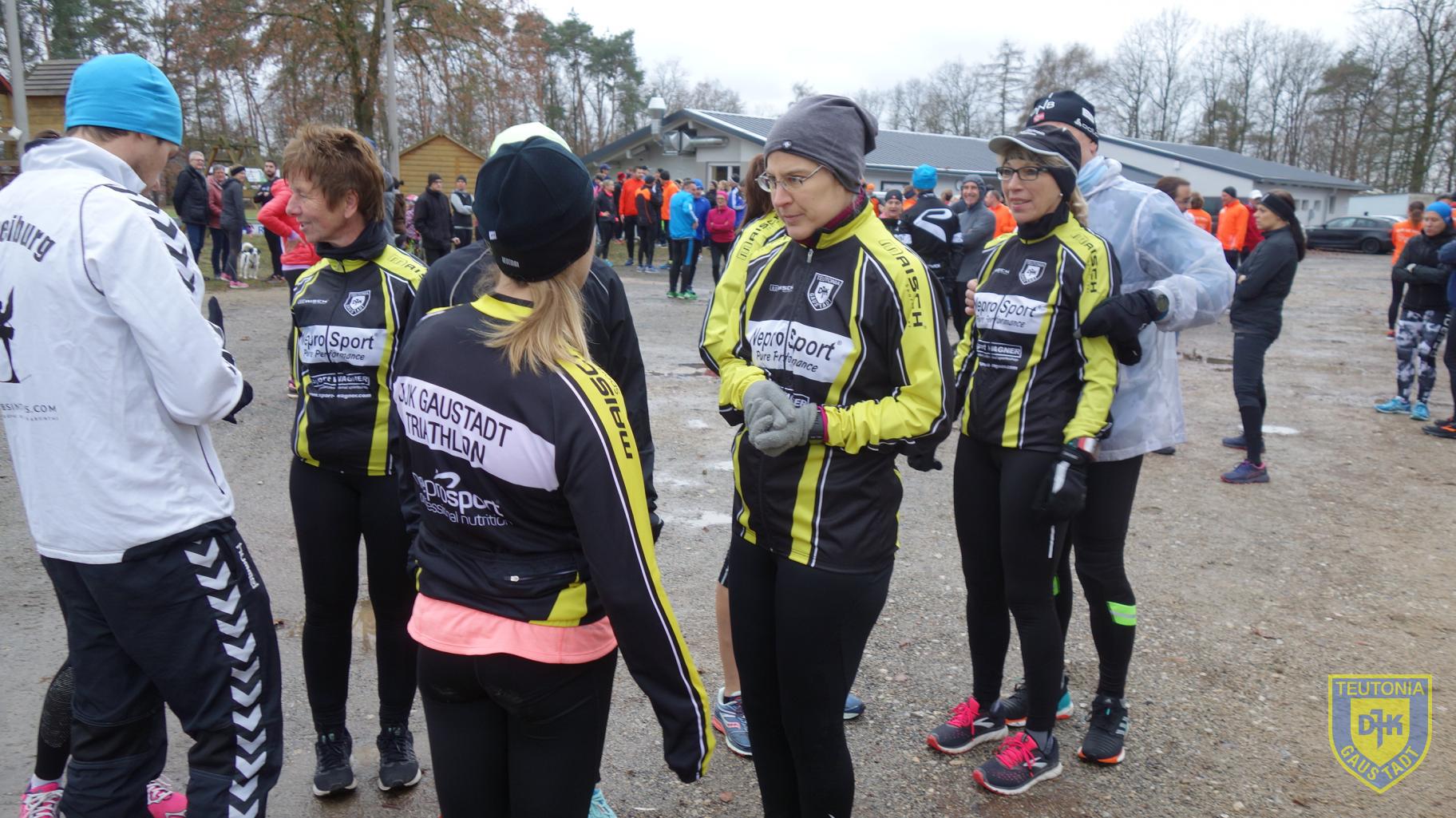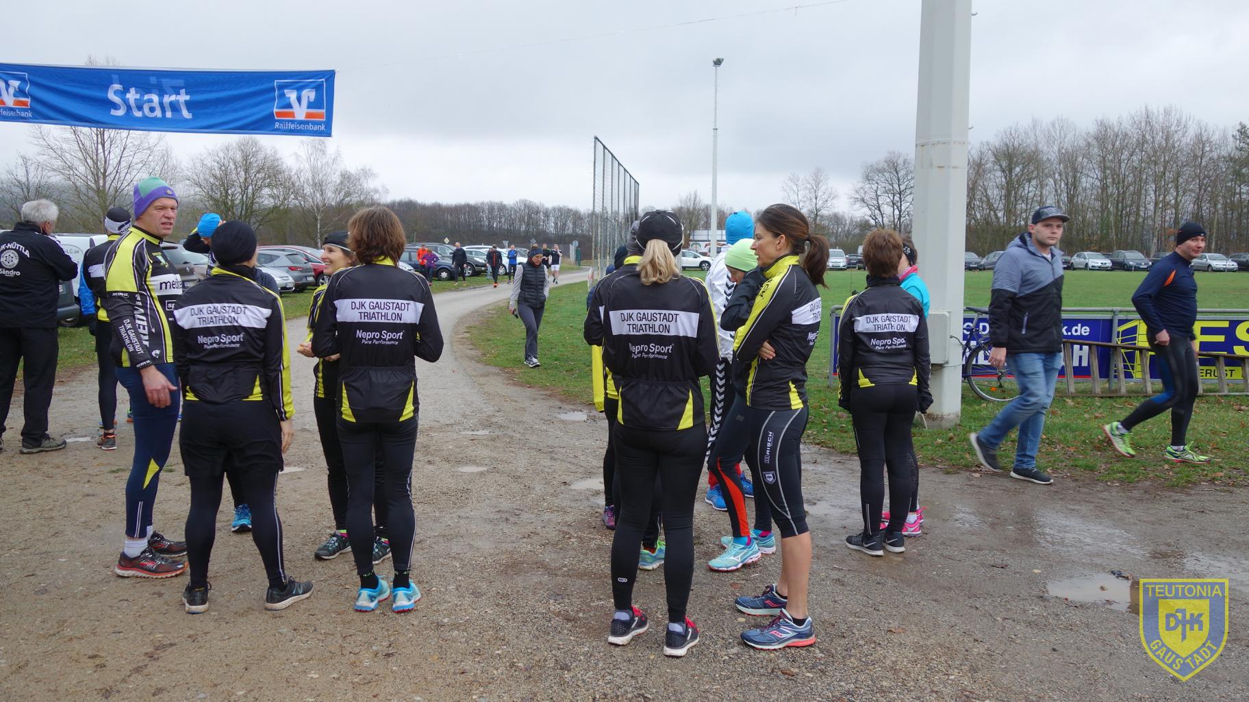 Ca. 200 Teilnehmer machten sich um 14 Uhr auf den Weg. Die Bedingungen waren für einen Lauf ideal, 8 Grad Lufttemperatur und kein Regen. Die Strecke führte über Asphalt- und Feldwege durch die hügelige Landschaft zwischen Untergreuth und dem Sportgelände. Bei Kilometer 2,3 zweigte die kürzere Strecke nach rechts ab. Die Streckenabsicherung übernahm die Feuerwehr, ein Verlaufen war nicht möglich. Im Ziel wartete auf die Teilnehmer ein beheizter Zeltanbau am Gebäude, in dem Kaffee, Kuchen, Glühwein, Bier und Würstchen zu günstigen Bedingungen angeboten wurden.