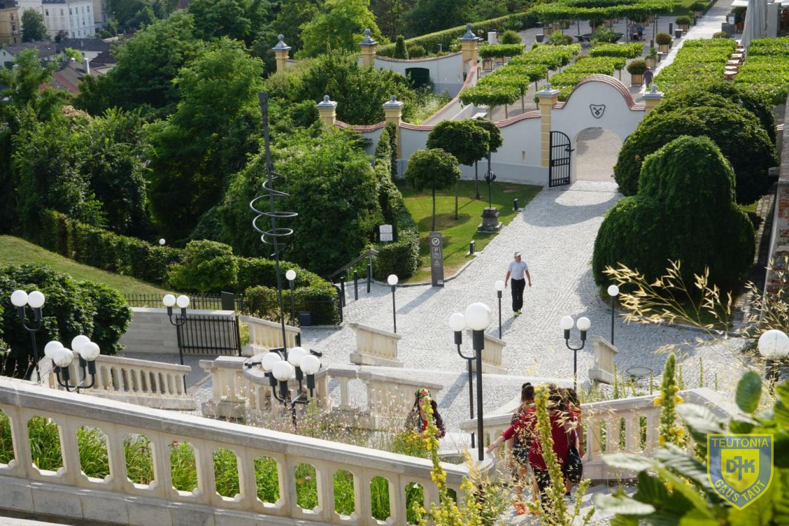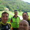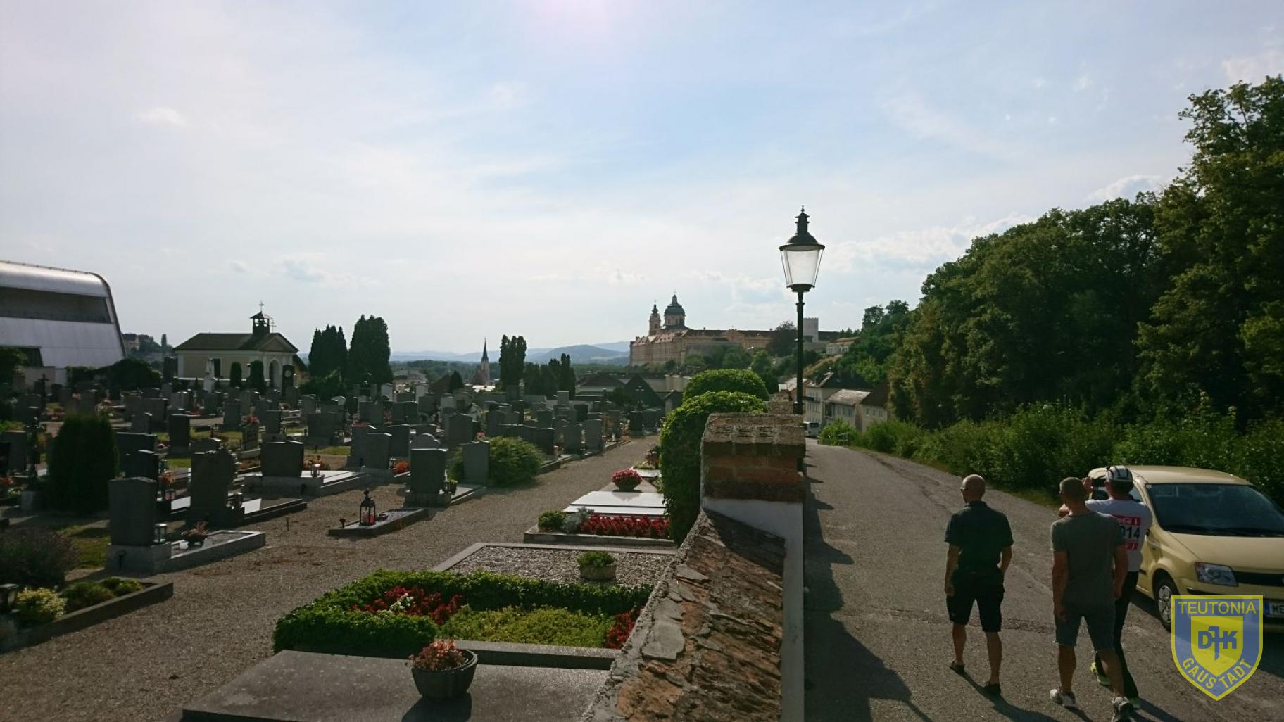 Nach einer erholsamen Nacht genossen wir in aller Gemütlichkeit das nicht ganz so umfangreiche aber trotzdem gute Frühstück und machten uns für die dritte Etappe bereit. Wie verabredet trafen wir Ole an unserem Hotel gegen halb zehn und rollten los. Heute ging es nach Melk. Auch heute wieder der erste Stopp nach nur 20 km. Wir verließen den Donauradweg in Richtung Norden. Eine kleine Anhöhe stelle sich uns in den Weg, die zwar kurz war, uns aber mit rund 14 % Steigung einige physische Kräfte abverlangte. Oben angekommen türmten sich die Mauern eines Reliktes aus dunklen Zeiten auf: Die KZ-Gedenkstätte Mauthausen. Der Besuch in der recht gut erhaltenen Anlage nagte auch ein wenig an den psychischen Kräften. Unvorstellbar aus unserer heutigen Sicht, was Menschen hier anderen Menschen vor mehr als 70 Jahren angetan haben. Ein Moment des Innehaltens, der uns weit weg katapultierte. Ein Schwarm Schwalben kreist immer wieder über die Mauern und die Türme hinweg. Einmal ein Vogel sein, wie viele Mensch an dieser Stelle diesen Gedanken wohl schon hatten? Irgendwann sind wir dann weiter, weg von diesem Ort, wieder runter an die blaue Donau. Der bisher eher leere Radweg wurde von jetzt an stetig voller, die Symphonie von vier Fahrradglocken gepaart mit dem Ausruf „rechts fahren!“ wurde zum Dauerbegleiter im Ohr der vier Teutonen. Kurze Mittagsrast in Grein nach ca. 60 km. Irgendwann tauchte dann von Weitem die Silhouette des Stifts Melk auf. Als Handlungsort in Umberto Eccos Roman „Im Namen der Rose“ weltberühmt und durchaus eindrucksvoll bereits von weitem. Auf dem Marktplatz in Melk angekommen trennten sich erneut die Wege zwischen uns und unseres Begleiters Ole. Wir verabredeten uns wieder, die morgige Etappe nach Wien gemeinsam zu fahren. Die Unterkunft lag nicht weit weg vom Donauradweg oberhalb von Melk. Nach einer kurzen und erfrischenden Dusche gingen wir runter in die Innenstadt. Die Hitze des späten Nachmittags begleitet uns auf dem Weg zum Stift Melk, ein beeindruckender Barock-Bau, der zum UNESCO-Welterbe gehört. Ein kurzer Streifzug noch durch den Stift-Garten, bevor die knurrenden Mägen uns zum Essen am Marktplatz überredeten. Es folgte das Übliche Prozedere der Verwirrung: Michael bestellte doppelt, Christian und Jens bestellten abwechselnd das Getränk, das der andere vorher hatte und so war die Bedienung wieder leicht sichtbar irritiert. Zum Ende gab es noch ein Eis auf dem Marktplatz mit bestem Blick auf das Stift und noch einen Absacker.