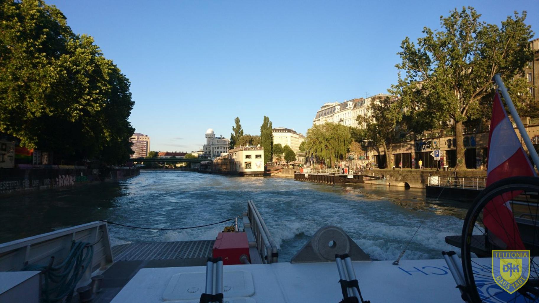Das große Ziel naht: die letzte größere Etappe, die es mit Gepäck zu fahren galt, startete gegen halb zehn am Marillenhof in Melk. Als Vorbereitung genossen wir wieder ein hervorragendes Frühstück mit selbstgebackenen Brötchen. Die ersten Kilometer rollte der DJK-Express mit Tender wieder entlang des Donauradweges. Nach knapp einer Stunde Fahrt nährten wir uns Dürnstein. Am Nordufer gelegen thront über der Stadt die einst mächtige Burg Dürnstein, heute nur noch eine Ruine, erbaut Mitte des 12. Jahrhunderts. Ein kurzer Stopp mit obligatorischem Foto erfolgte. Jedoch anders als Richard Löwenherz wurden wir nicht zu unfreiwilligen Gästen. Herzog Leopold V. bzw. Hadmar II. hielten den Englischen König auf seiner Rückkehr vom Dritten Kreuzzug dort gefangen und lieferten diesen später an Kaiser Heinrich VI. aus. Eine Festungshaft blieb uns allerdings glücklicherweise erspart. Nach einer kurzen Hast, bei der Jens und Ole vom DJK-Tross abrissen, kehrten wir zum Mittag in die Bärndorferhütte am Fuße des Atomkraftwerkes Zwentendorf ein. Das AKW wird als die größte Investitionsruine Österreichs bezeichnet, denn es ging tatsächlich nie in Betrieb. Somit mussten wir uns auch keine Sorgen machen und konnten entspannt das Essen genießen. Die Kilometer flogen weiter an uns vorbei, bis wir nach knapp 110 Kilometer einen letzten Stopp kurz vor Wien einlegten. Wir verabschiedeten uns bereits von unserem Begleiter, der am selben Tag noch ein paar Kilometer fahren wollte. Von Norden her rollten wir dann nach Wien ein, ohne direkt zu wissen, dass wir bereits da waren. Es fehlte das Ortsschild auf dem Radweg, so dass wir bereits mitten in Wien zum Halten kamen. Die nun endgültige Verabschiedung von Ole war dann doch irgendwie merkwürdig, hatte er uns doch jetzt fast 3 Tage und 300 km begleitet. Aber Wege trennen sich und Bamberger wissen es: Man sieht sich immer zweimal. Zur Überbrückung der Schlüsselübergabe der Unterkunft genossen Christian, Michael und Ralf einen kurzen Sprung in die Donau, während Jens bei den Fahrrädern ein wenig döste. Eine Zwei-Zimmer-Wohnung im sechsten Stock mitten in der Wiener Donaustadt diente als Unterkunft, die Räder parkten auf den zwei angeschlossenen Balkonen. Getreu Reinhard Fendrichs Hit „Haben sie Wien schon bei Nacht gesehen, haben sie das schon erlebt?“ war der Plan für den Abend geschmiedet: Essen im nahegelegenen Donau Zentrum und danach mit der U-Bahn zum Stephansplatz. Ein kurzer Rundgang durch die Wiener Innenstadt, vorbei am Stephansdom, der Wiener Hofburg sowie der Österreichischen Nationalbibliothek zur Albertina endete dann mit einem Radler aus der Dose auf einer Parkbank mitten in der Wiener Innenstadt, durchaus stilvoll.
