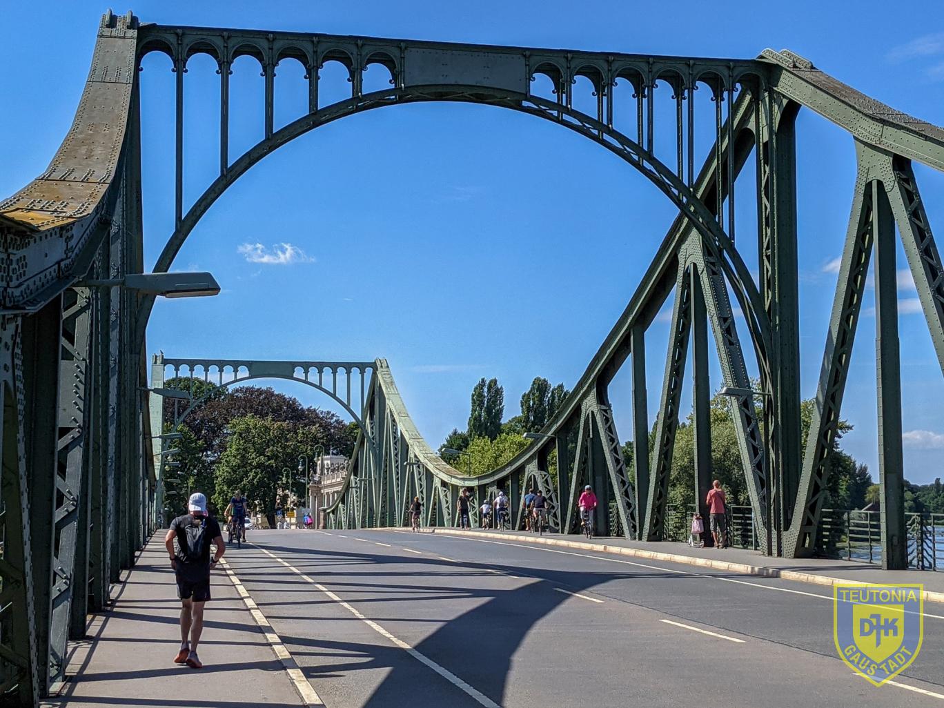 Der südliche Teil der Strecke ist durch viel Wald geprägt und somit auch vielen schattigen Passagen. Bei den Temperaturen ist dies auch gut so! Teilweise schöne, kleine Birkenwälder, durch die schmale Pfade führen, teilweise größere Waldstücke mit älterem Baumbestand. An der Kreuzung mit der B101 sind die ersten 50 Kilometer gelaufen – nur noch 110 Kilometer. Über Seehof, durch das die Mauer lief und dem Teltowkanal geht es zur ersten Wechselstation bei km 59. Nach einer kurzen Pause laufe ich weiter und die Strecke führt uns zwischen Zehlendorf und Kleinmachnow weiter Richtung Potsdam. Über den Königsweg laufen wir bis Griebnitzsee, etwa auf halber Strecke überqueren wir dabei die A115 am Kreuz Zehlendorf mit dem ehemaligen Grenzübergang Dreilinden.