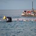 Ich durfte mich um 7.20 Uhr mit über 500 weiteren Kerlen aus der AK45-49 in die Fluten des warmen Pazifik stürzen, genau zu dem Zeitpunkt, als die ersten Profimänner wieder an Land krabbelten.