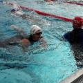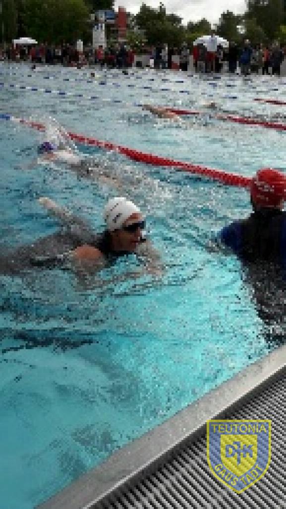 Bis kurz vor 9Uhr war der Checkin möglich. Darauf folgte gleich um neun Uhr die Wettkampfbesprechung am Schwimmbecken. Die Außentempetarur war noch recht frisch, aber durch vereinzelte Sonnenstrahlen wurde es etwas angenehmer. Um 09:30 startete schon die 1. Welle von drei Wellen der Olympischen Distanz, in dieser durften Michaela und Claudia ins Rennen starten. Ich war in der Dritten Welle mit dabei, die pünktlich um 11:05 startete.