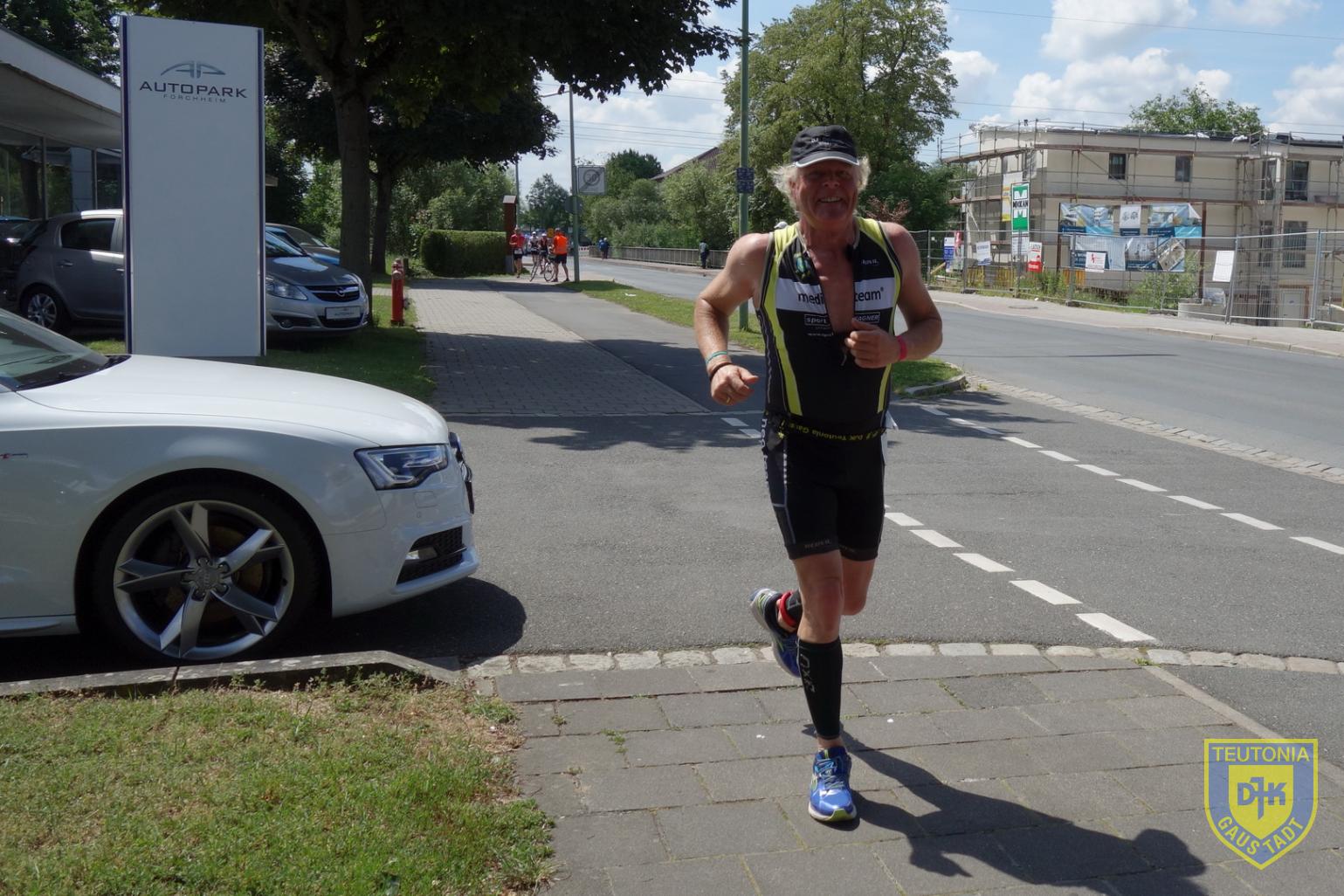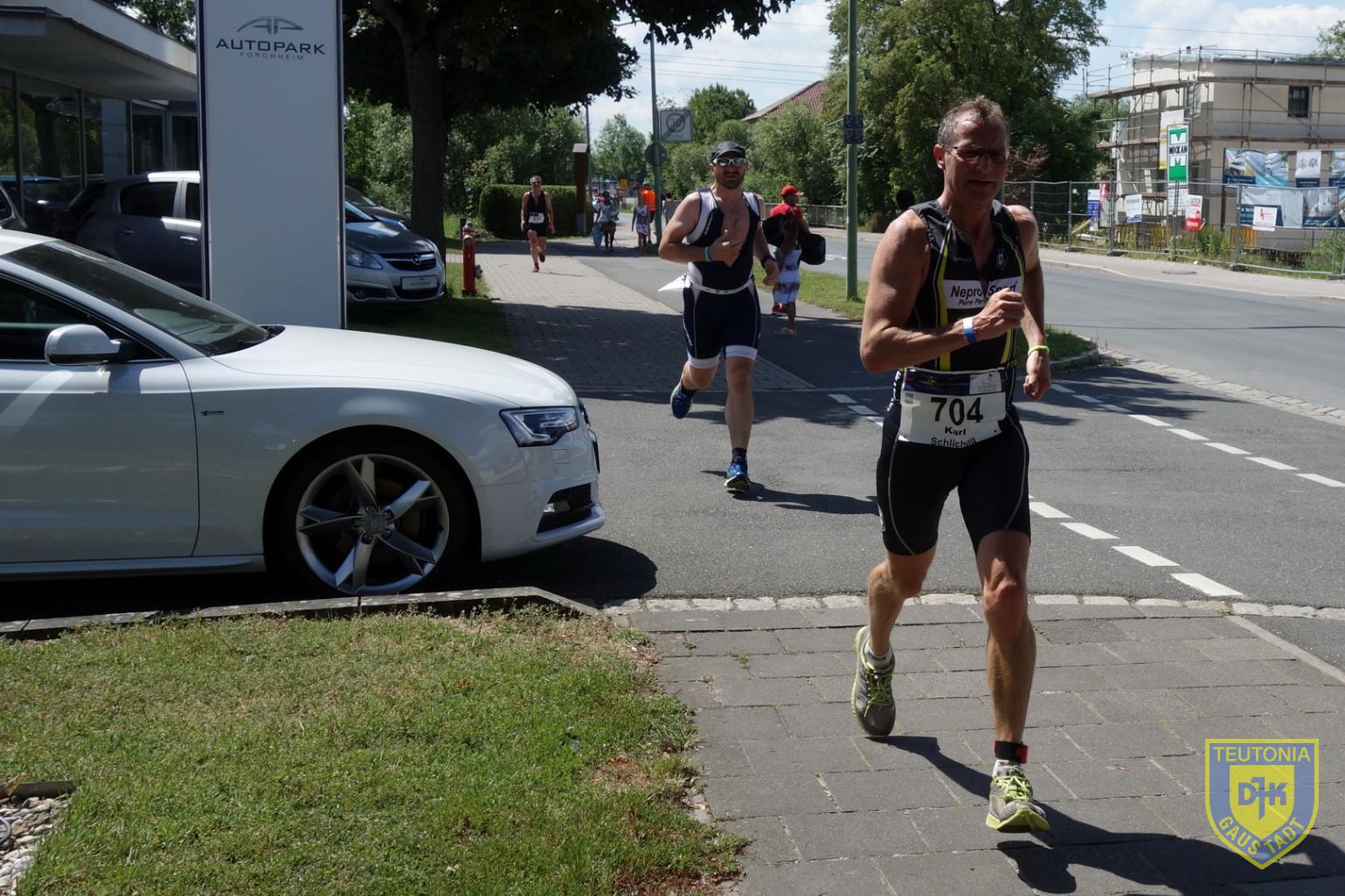 Am Sonntag starteten über 220 Teilnehmer beim 6. Forchheimer Stadtriathlon über die Sprintdistanz (500m, 19km, 5km). Zum 2. Mal fand die Veranstaltung rund um das Königsbad auf der neuen Strecke statt. Geschwommen wurde im 50m Becken auf abgetrennten Bahnen, dann ging es auf 4 Runden durch Forchheim, die mit vielen Ecken und auch einer 180 Kehre gespickt waren. Die Laufstrecke führte dann rund um das Königsbad, teils auf Schotterwegen, teils auf den Gehwegen entlang den Straßen. Früh morgens lag noch Nebel über Forchheim und es war fröstelnd kalt , doch beim Rad einchecken schien bereits die Sonne und während des Wettkampfes lag die Temperatur über 25 Grad, also ideal für einen kurzen knackigen Triathlon.