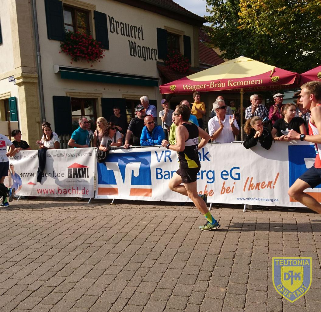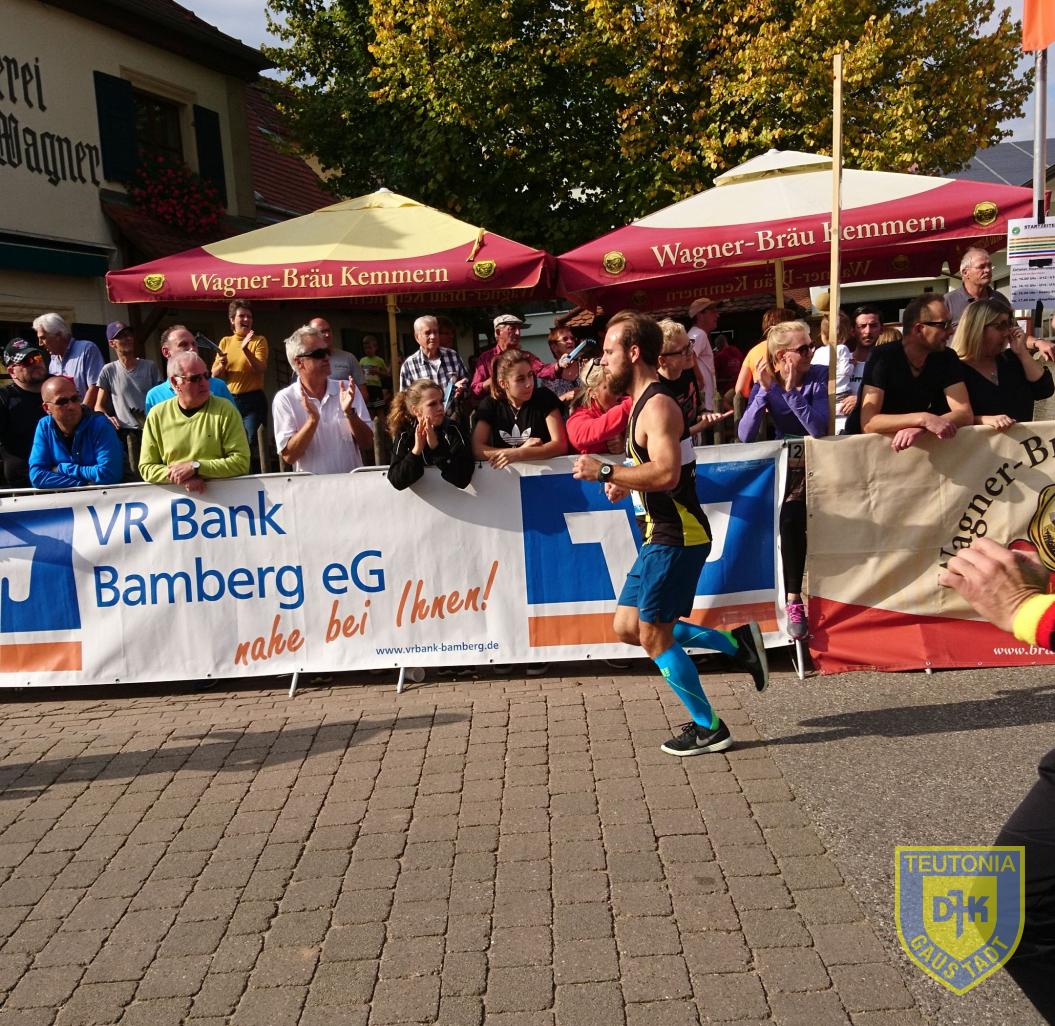 Das Herbstwetter hat sich fairerweise noch erbarmt und sehr angenehm Sonne gespendet, es waren sozusagen ziemlich optimale Bedingungen für den Lauf. Die Anreise inklusive Aufwärmen erfolgte mit dem Rad. In Bischberg habe ich Max eingesammelt und wir sind gemeinsam hin geradelt.