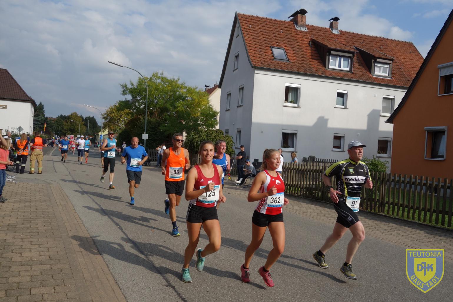 Mein Plan (ob er nun gesund oder richtig ist?) ging ziemlich auf. Die ersten 2 Runden ziemlich Vollgas geben, Runde 3 bis in die 4. Runde etwas ausruhen und langsamer und auf der 5. Runde gucken, was noch geht. Ein kleiner Zielsprint war auch noch möglich. Und rum waren sie die 10km. Ich muss sagen ziemlich am Limit, da ich mich im Ziel erstmal auf den Boden setzten musste. Zur Strecke, sie war flach mit ein paar Kurven. Pro Runde, kurz vor Kilometer 1, gab es eine Verpflegungsstation. Auf der Zielgeraden standen Karl und Ursel, die uns fleißig angefeuerten, was mich sehr animierte und ich mein Tempo immer wieder etwas steigern konnte. Im Ziel gab es dann noch eine gute Verpflegung mit Keksen, Riegel, Obst usw.