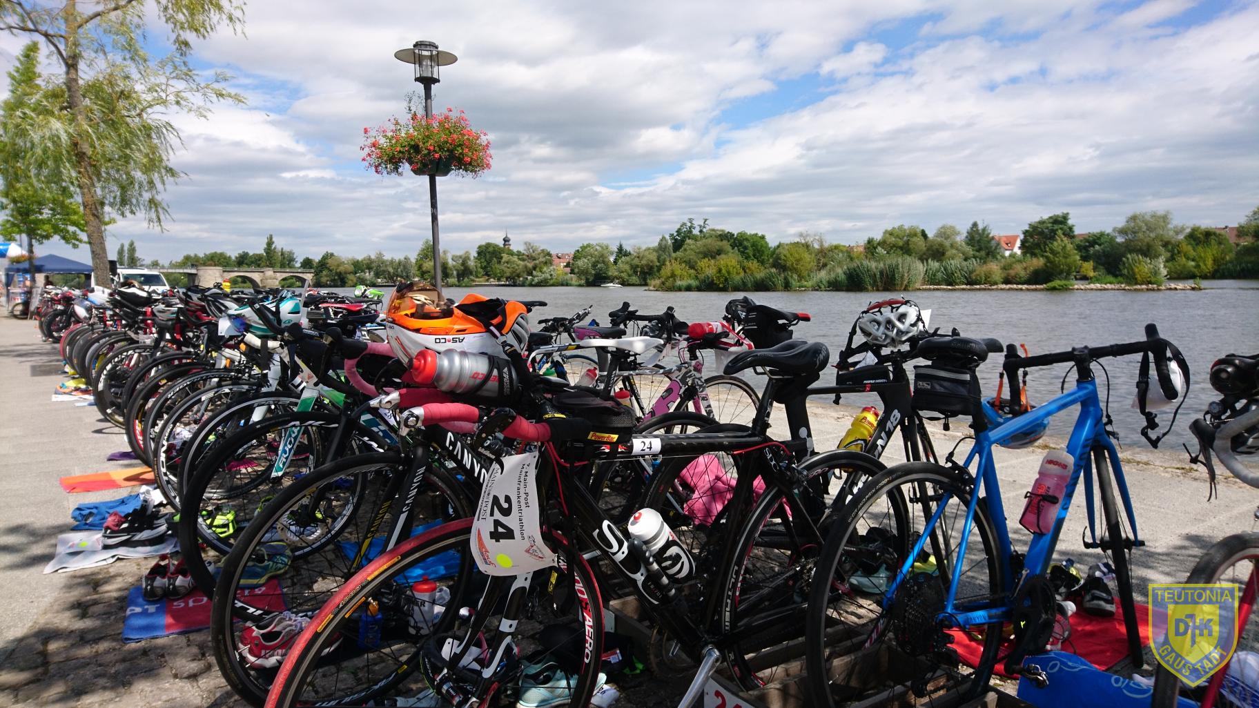 Nun also doch, ich bin angemeldet für einen Triathlon. In weiser Voraussicht allerdings nur für die Staffel. Spontan entschieden sich Micha, Sandra und ich beim Lauf10-Abschlussabend im Vereinsheim, uns gemeinsam als Staffel für die Volksdistanz anzumelden. Nach kurzer Beratschlagung waren auch die Disziplinen verteilt: Micha schwimmt, ich fahr Rad und Sandra läuft. „Die Unbelehrbaren“ waren angemeldet! So machen wir drei uns am Samstag auf nach Kitzingen, im Gepäck Christian, der aber anders als wir auf der Olympischen Distanz debütierte. Für mich als (reiner) Läufer ist der ganze Ablauf eine interessante Erfahrung. Beim Laufen ist es herzlich egal, wer was wann wo macht, Hauptsache man ist am Start, wenn‘s „Peng“ macht. Ganz anders beim Triathlon: rechtzeitiger Check-In, streng limitierter Zugang zur Wechselzone, Wettkampfbesprechung etc. Für Triathleten vollkommen normal, aber für mich völlig ungewohnt.