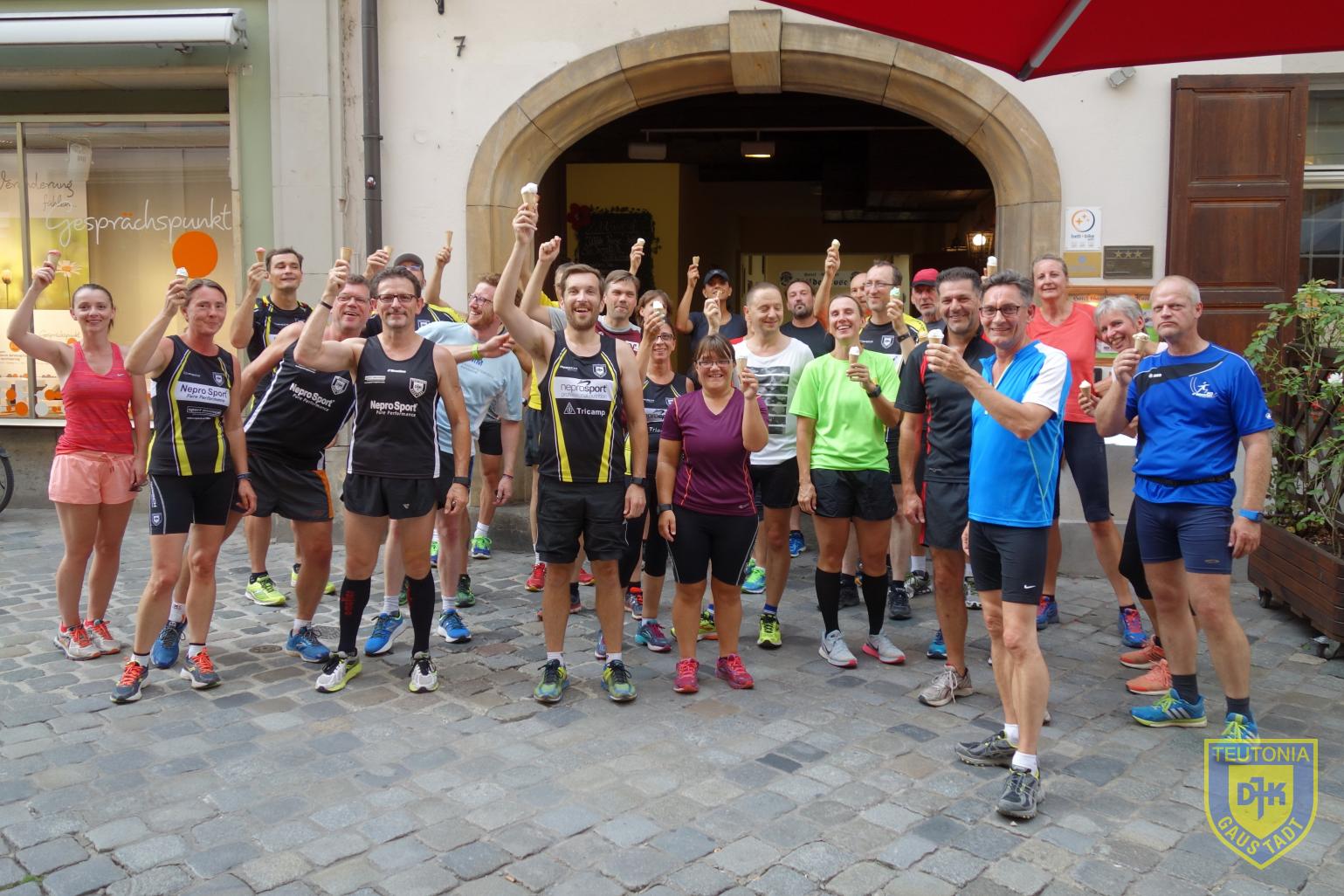 Die vier Gruppen liefen auf unterschiedlichen Strecken vom Sportstadion in Gaustadt zum Eiscaffee LIDO am Gabelmann. Wir kamen zeitlich fast gleichzeitig an und jeder bekam eine Portion leckeres Eis. Danach liefen wir wieder locker über den Treidelpfad nach oben unserem Startpunkt entgegen.