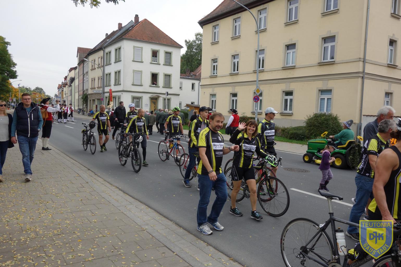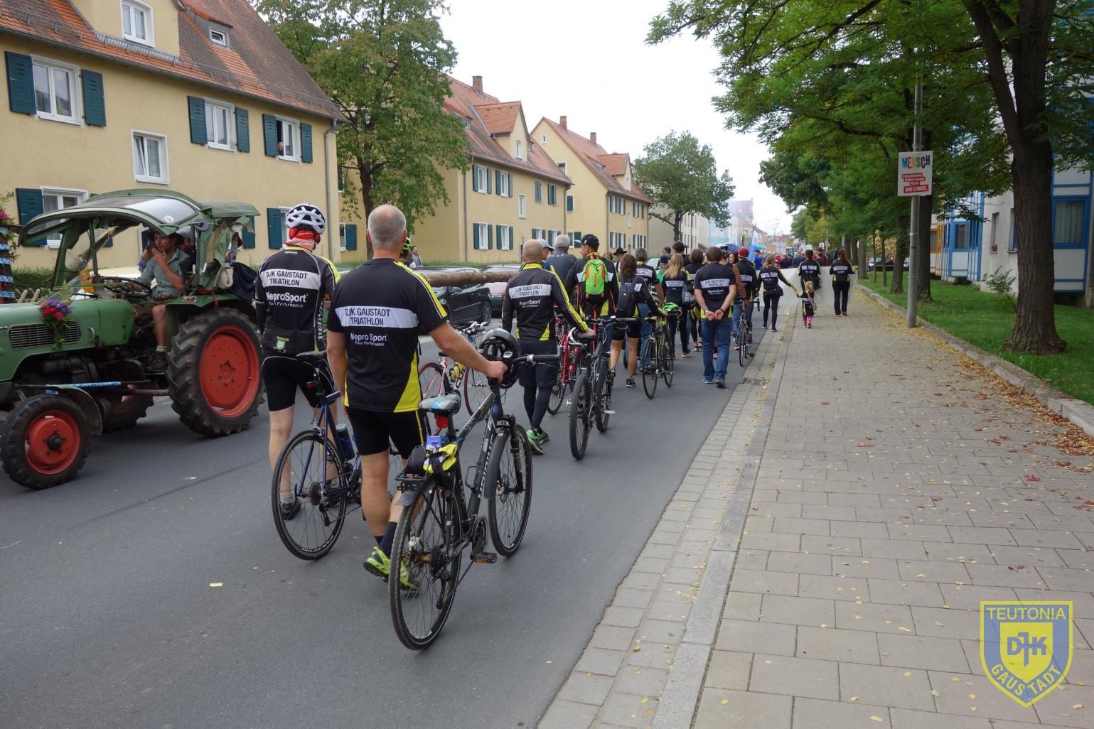 Der Mitgliederzuwachs zeigte sich auch beim Kirchweihumzug. Eine stattliche Anzahl von DJK'lern präsentierte die Triathlonabteilung beim traditionellen Umzug durch Gaustadt. Natürlich waren auch wieder Kinder und Enkel dabei. Auch unser Bürgermeister Christian Lange schaute kurz vor dem Start vorbei. Von Musik begleitet führte der Weg zur Hauptstraße und zum Wendepunkt an der Erbabrücke, bevor er am Kirchweihplatz endete. Nach dem Umzug setzen sich die Triathletinnen / Triathleten noch im Festzelt zusammen. Bei Kaffee und Kuchen wurden lockere Gespräche geführt, ehe die schöne Gemeinschaftsaktion endete.