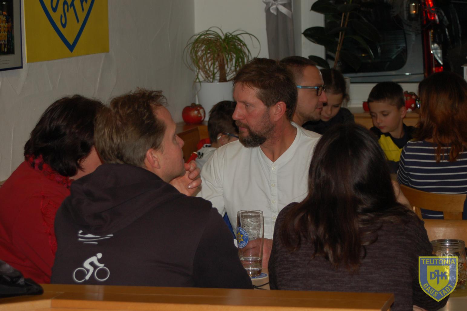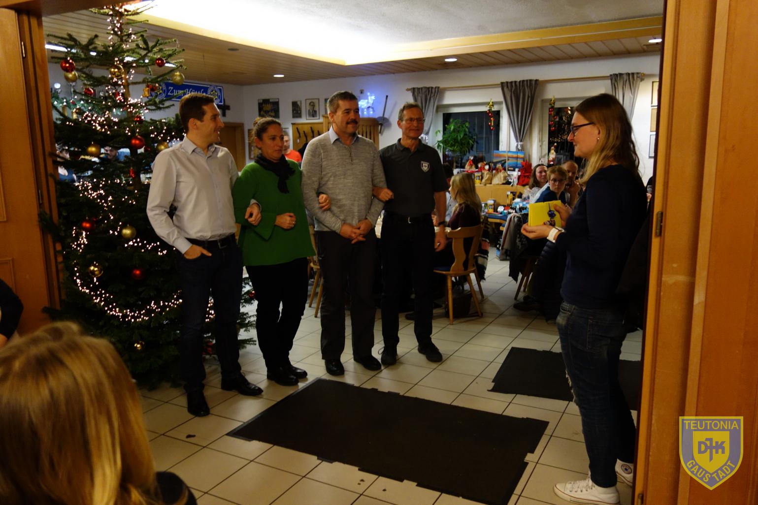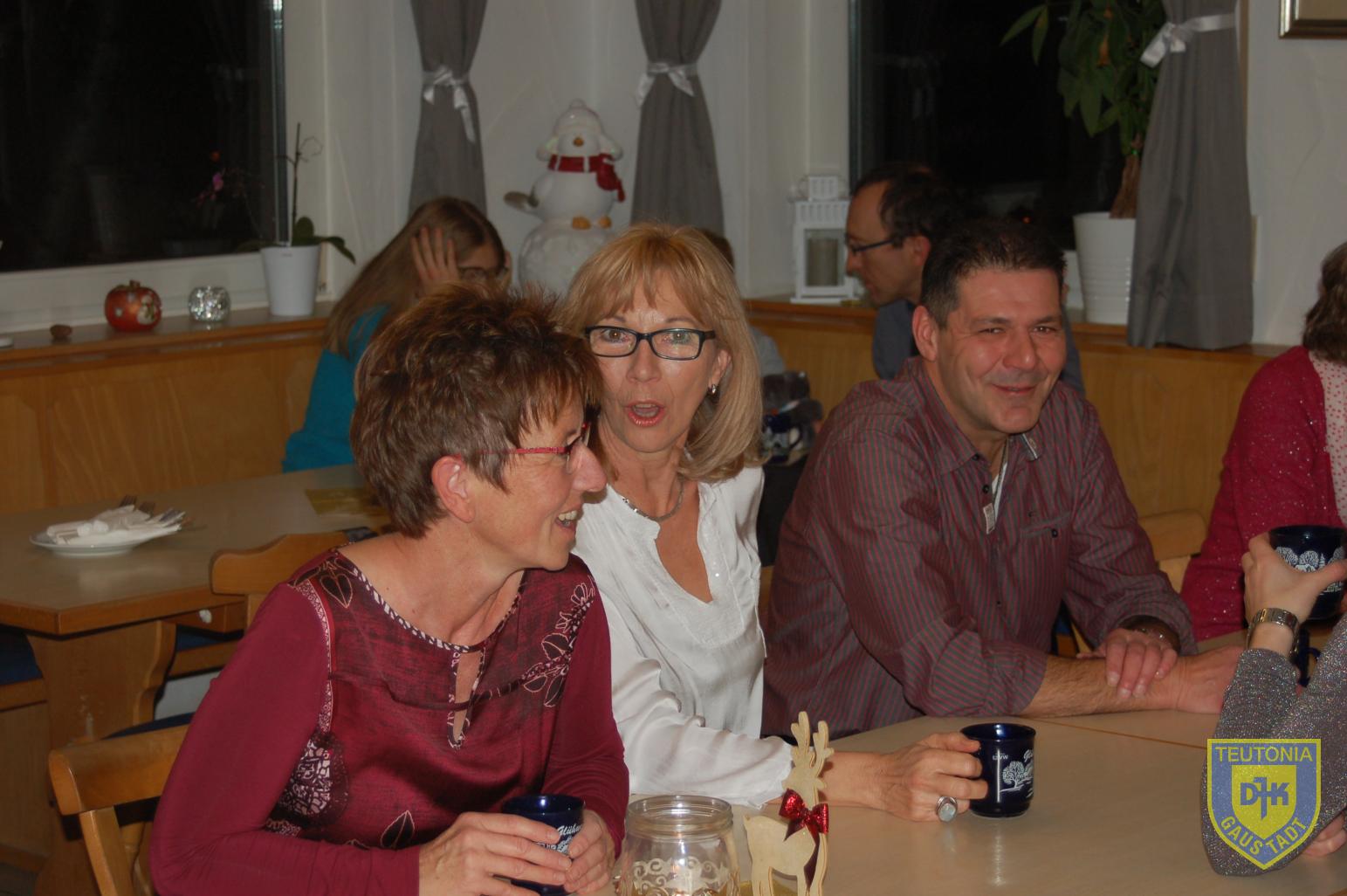 Der Platz im Vereinsheim reichte in diesem Jahr gerade noch aus, um die zahlreich erschienenen Triathletinnen und Triathleten samt ihren Familienangehörigen aufzunehmen. Die Weihnachtsfeier begann gegen 18 Uhr mit einem Glühweinumtrunk, natürlich auch ohne Alkohol.