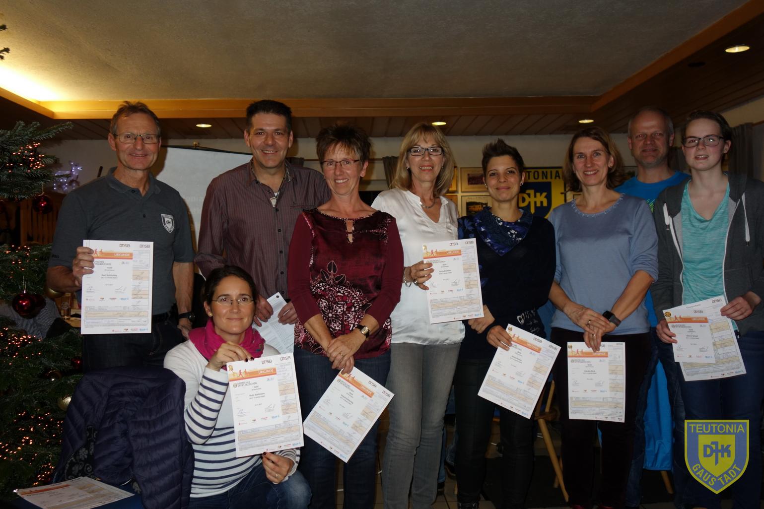 Jürgen Scharf ehrte die Sportler, die in diesem Jahr das Sportabzeichen bestanden haben. Karl Schlichtig und Silvia Kiederer konnten an die Anwesenden die Startgeld- / Startpasserstattung ausgeben.