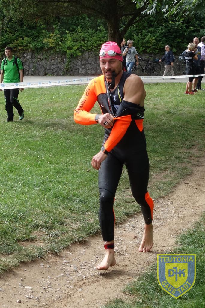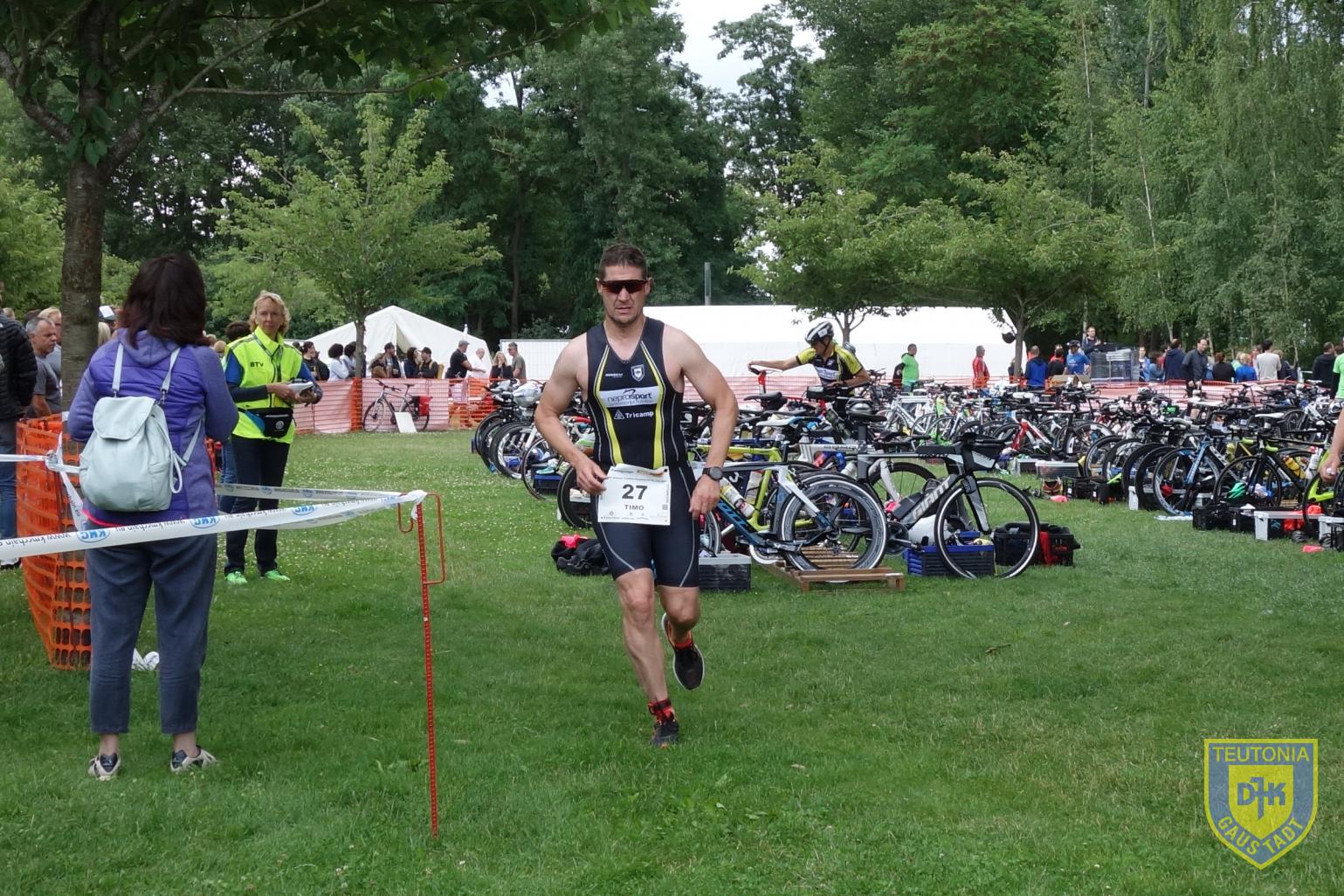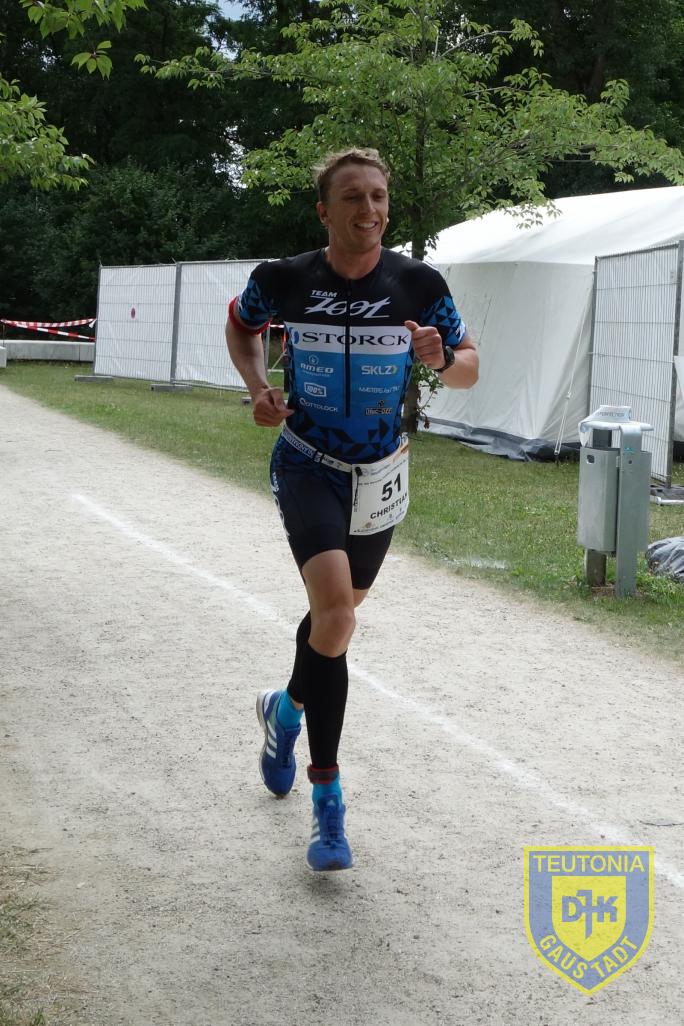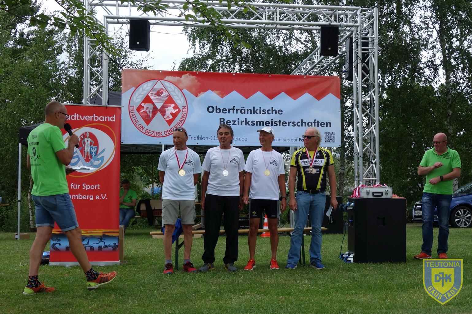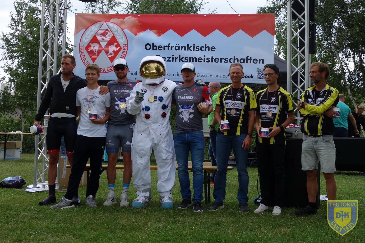 Türk dreht auf Radstrecke auf. Als schnellster Schwimmer verließ Manuel Heilmann (SSV Forchheim) nach 19:06 Minuten die Regnitz, dicht gefolgt von Lokalmatador Matthias Türk (TDM Bamberg) und Andreas Besold (RSC Marktredwitz). Mit der besten Radzeit (1:07:04) schob sich Türk bis zum zweiten Wechsel ganz nach vorne, dicht gefolgt von Heilmann und Besold. Es entwickelte sich ein sehenswertes Rennen mit dem besten Ende für Besold. Er setzte sich auf der letzten Runde von Türk ab und siegte in 2:04:52. Der Bamberger freute sich über den zweiten Platz (2:05:42) und die oberfränkische Vizemeisterschaft. Der lange Zeit führende Heilmann musste sich am Ende mit dem undankbaren vierten Platz in 2:07:12 begnügen, da sich Daniel Jungkunz mit einem schnellen Lauf (37:53, gesamt 2:07:08) noch auf den Bronzeplatz nach vorne schob.