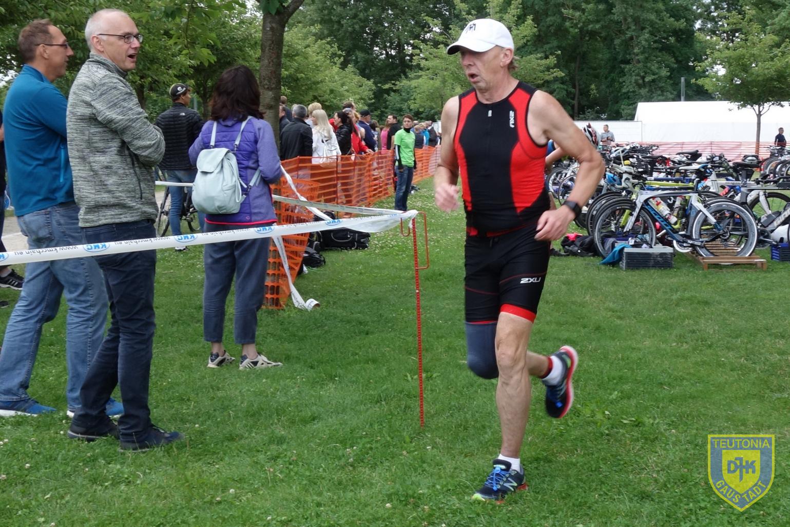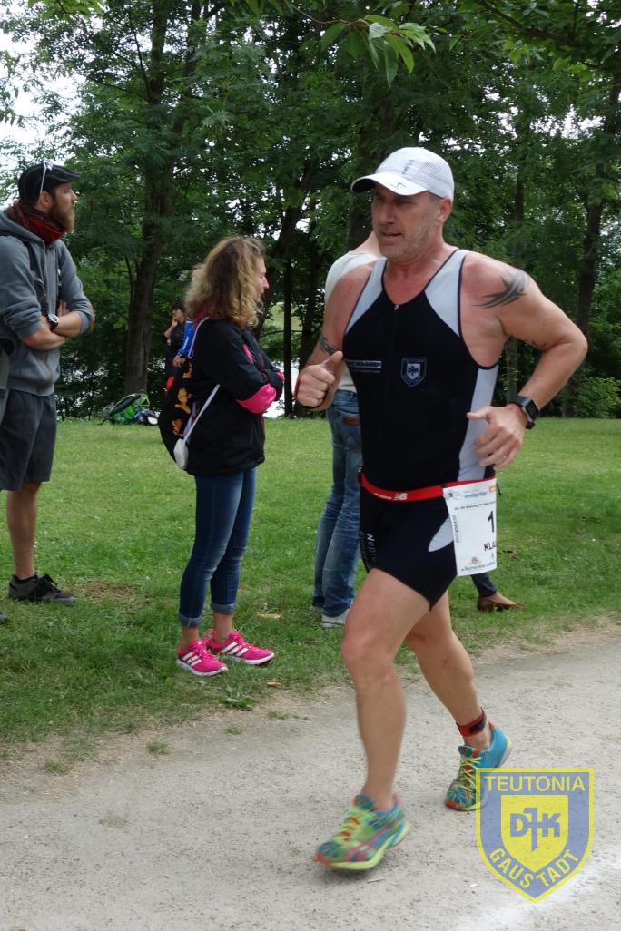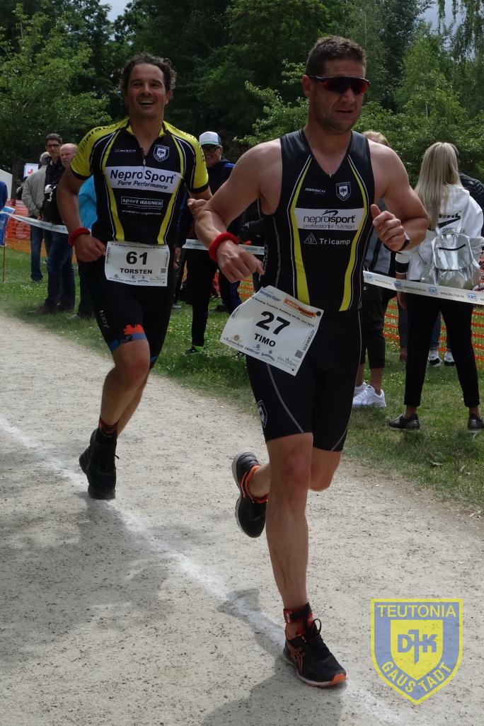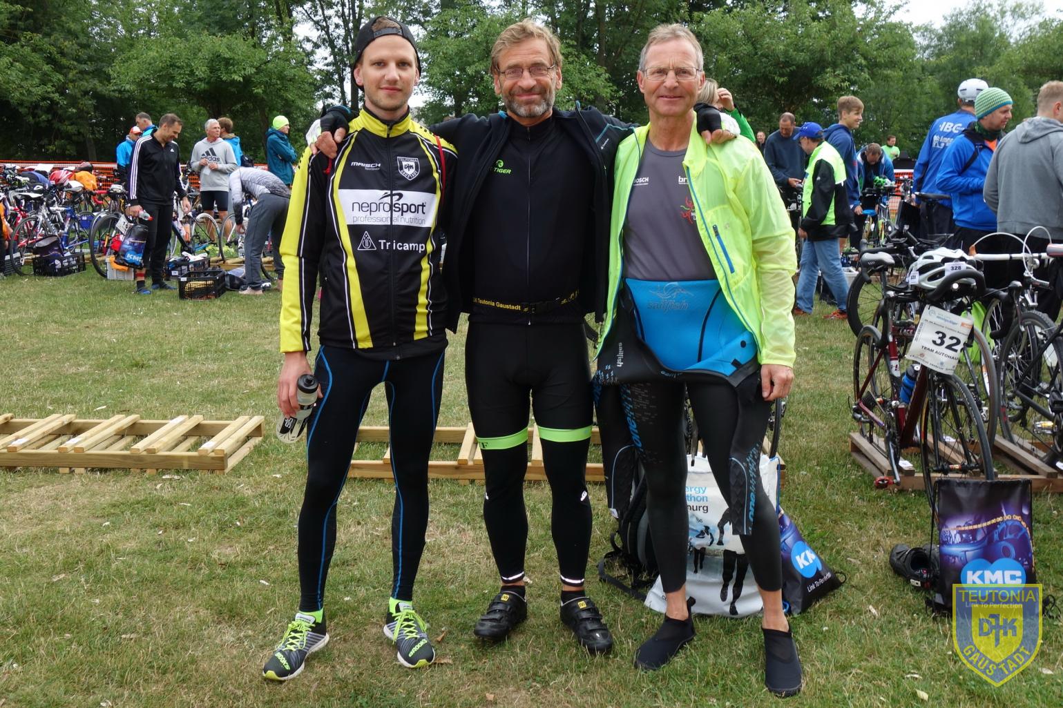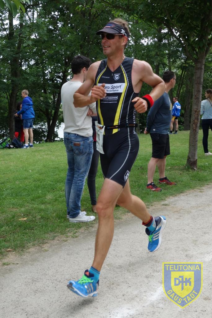 Türk dreht auf Radstrecke auf. Als schnellster Schwimmer verließ Manuel Heilmann (SSV Forchheim) nach 19:06 Minuten die Regnitz, dicht gefolgt von Lokalmatador Matthias Türk (TDM Bamberg) und Andreas Besold (RSC Marktredwitz). Mit der besten Radzeit (1:07:04) schob sich Türk bis zum zweiten Wechsel ganz nach vorne, dicht gefolgt von Heilmann und Besold. Es entwickelte sich ein sehenswertes Rennen mit dem besten Ende für Besold. Er setzte sich auf der letzten Runde von Türk ab und siegte in 2:04:52. Der Bamberger freute sich über den zweiten Platz (2:05:42) und die oberfränkische Vizemeisterschaft. Der lange Zeit führende Heilmann musste sich am Ende mit dem undankbaren vierten Platz in 2:07:12 begnügen, da sich Daniel Jungkunz mit einem schnellen Lauf (37:53, gesamt 2:07:08) noch auf den Bronzeplatz nach vorne schob.