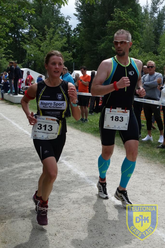 profilierten Radstrecke Bestzeit (1:13:06) und einen beachtlichen Vorsprung heraus. Mit nun drei Minuten Rückstand machte sich die starke Läuferin Krauss auf die Verfolgung, musste dann aber das Rennen nach der Hälfte der Distanz wegen muskulärer Beschwerden aufgeben. Timm siegte in starken 2:18:02 und sicherte sich zudem den Titel der oberfränkischen Meisterin. Auf den zweiten Platz lief Anna-Lena Klee (TSV Mellrichstadt,2:25:50) vor Valeria Kleiner (Team Autohaus Amon,2:26:06). Auch Anne Kirsten (DJK Gaustadt) zeigte ein couragiertes Rennen und belohnte sich in 2:28:20 als Geamtvierte mit dem oberfränkischen Titel in der W30. Die älteste aller Teilnehmerinnen, Maria Winter (DJK, 2:58:53), war in der Altersklasse 55 ebenfalls die Schnellste des Bezirks. Im Rahmen der Siegerehrung ehrten Bürgermeister Dr. Christian Lange und Sibylle Kretschmar vom Stadtverband Sport die Stadtmeister. Mit diesem Titel dürfen sich jetzt Matthias Türk und Annika Timm schmücken. Silber ging an Holger Link und Anne Kirsten, Bronze an Peter Dietz und Maria Winter.
