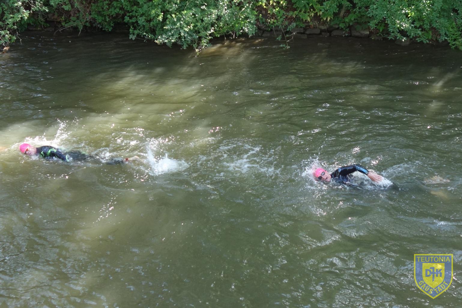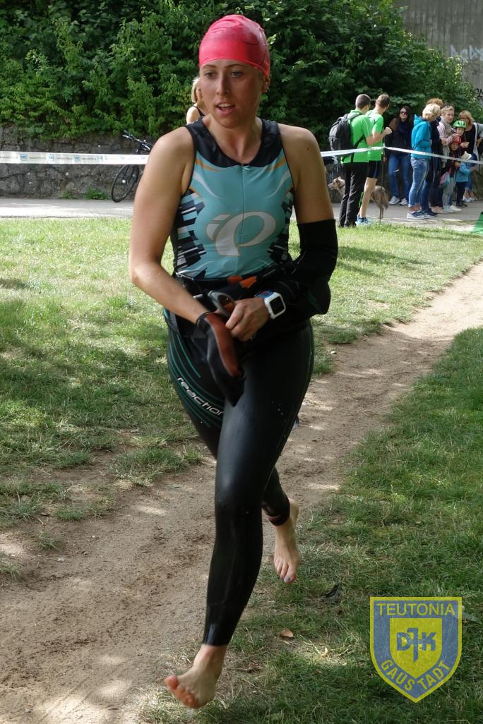 Beim Damenrennen sah es zunächst nach einem Zweikampf der beiden Favoritinnen Hanna Krauß (SSV Forchheim) und Annika Timm (IfA Nonstop Bamberg) aus. Krauß kam gleichzeitig mit den schnellsten Männern nach 19:03 Minuten aus dem Wasser, Timm benötigte drei Minuten länger. Dann allerdings zündete die Bambergerin den Turbo und fuhr auf der