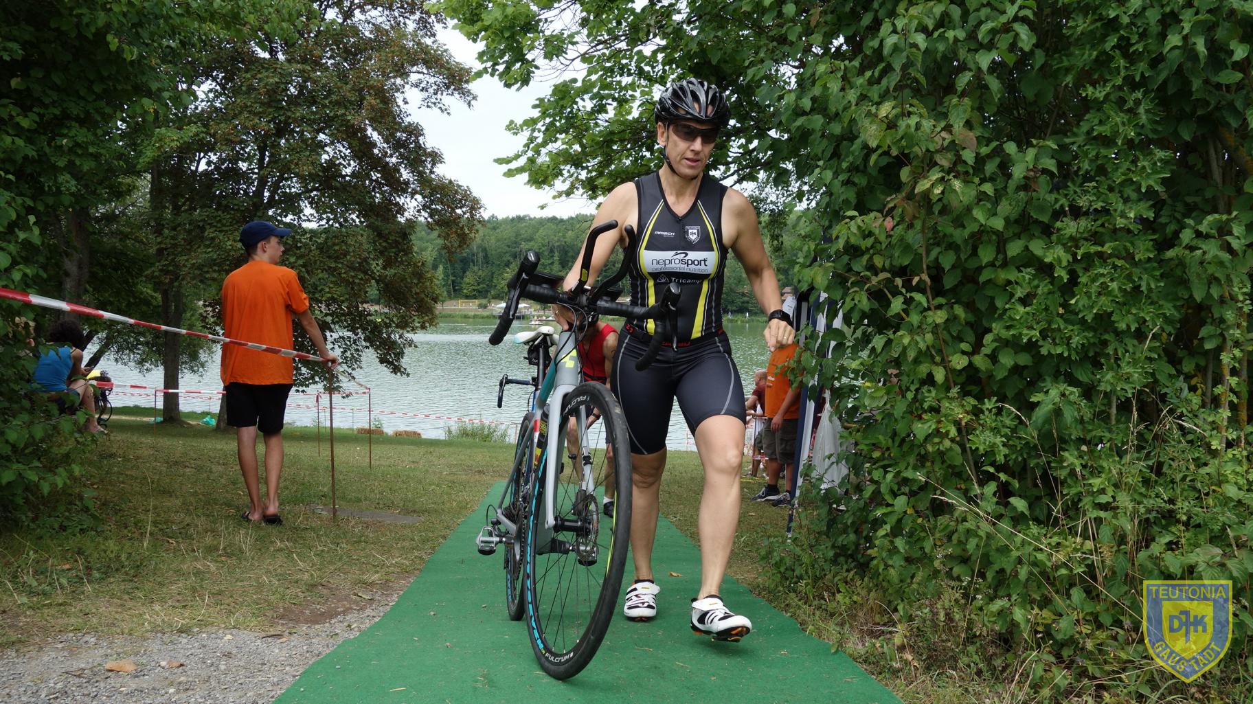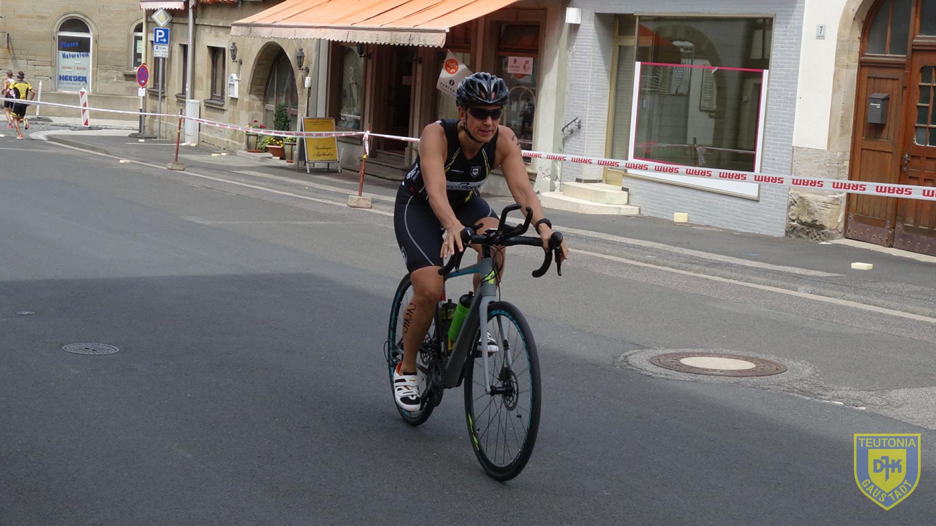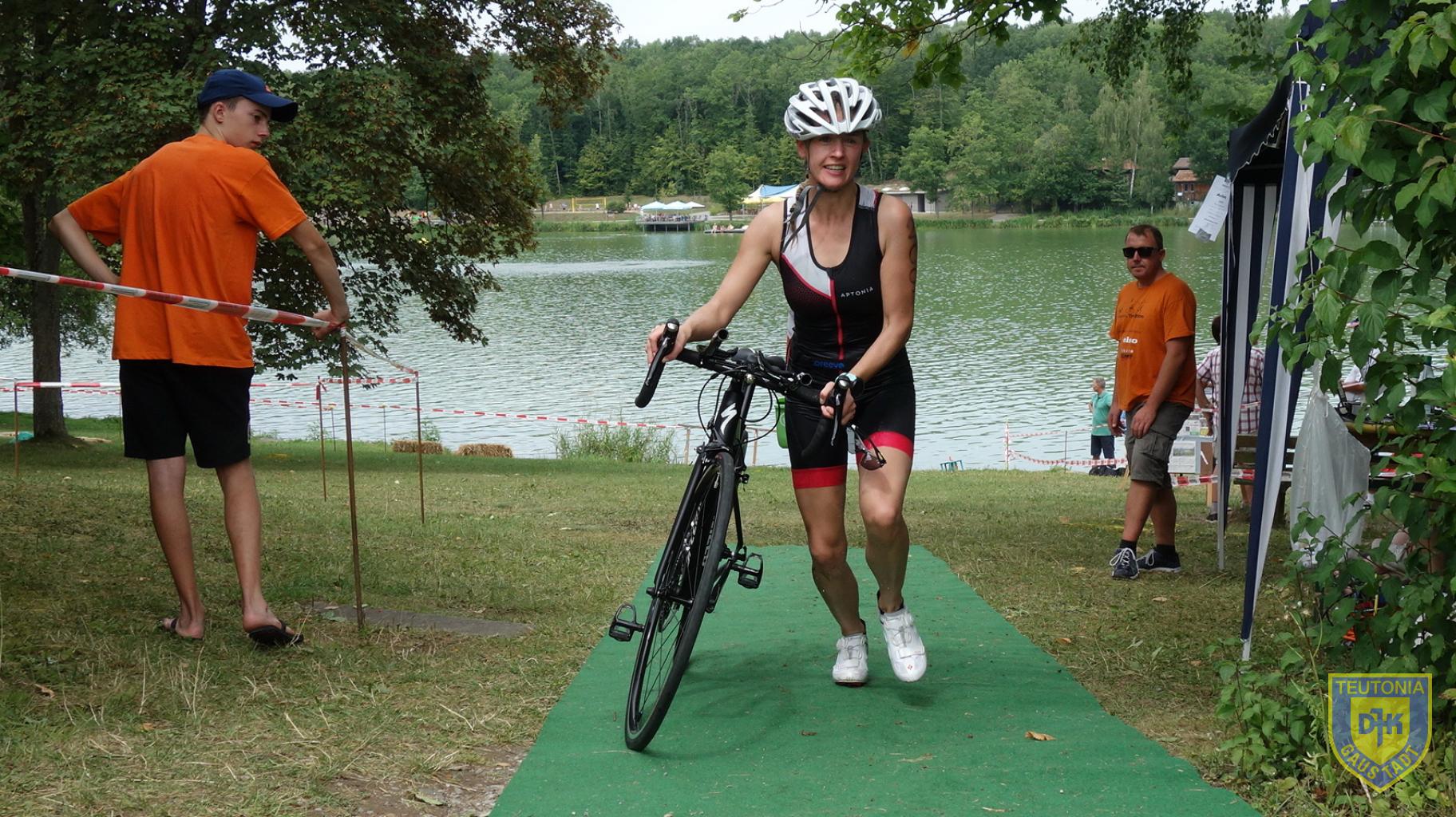 Gerhard, Micha und mich erwartete eine Runde durch den See. Nachdem ich dieses Mal ohne größere Dramen aus dem Wasser gekommen bin, ging es mit einem guten Gefühl auf die Radstrecke, die vom See 17,2 km nach Hofheim führte. Für die Kurzdistanzler ging es in Hofheim auf eine weitere Runde, Aika auf der Mitteldistanz musste drei weitere ganze Runden bewältigen.