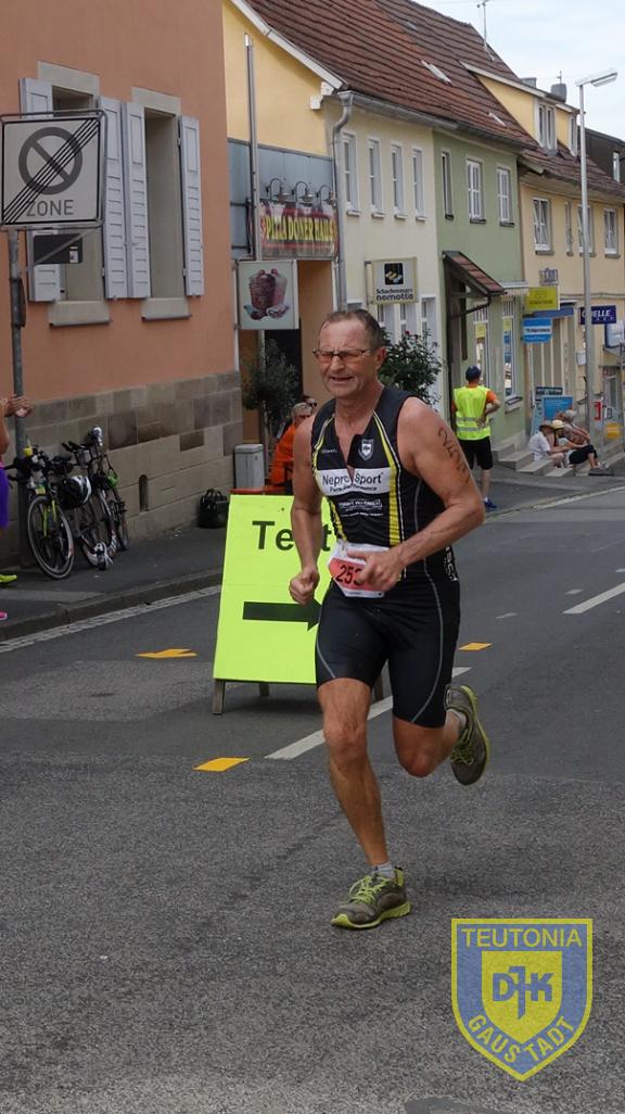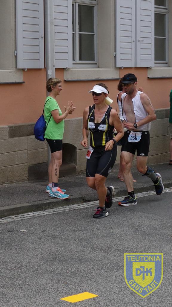 In Hofheim angekommen wurde das Rad noch vor der Wechselzone mit freundlicher Helferunterstützung in dafür vorgesehene Halterungen gehängt und dann ab in die Wechselzone, Box gesucht, rein in die Laufschuhe und los!