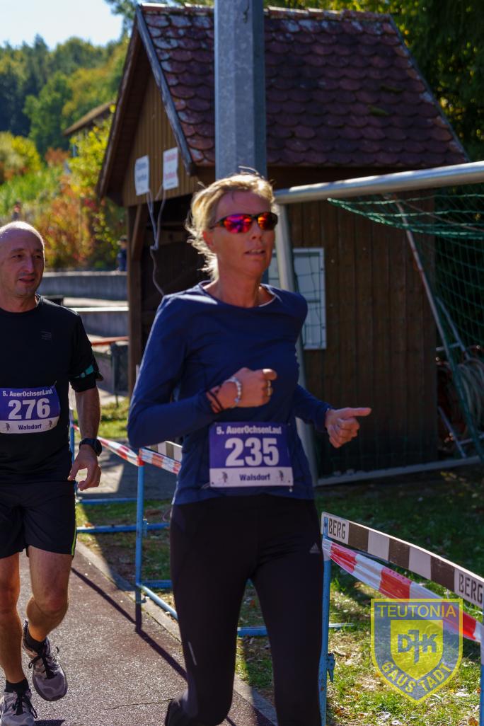 Nachdem ich den Termin recht spät auf unsrer Seite gestellt habe, waren leider nur Karin und Ich von den Teutonen am Start. Ich dachte, dass hier weniger ambitionierte Läufer an den Start gehen, aber Pustekuchen die gleichen Jungs und Mädels wie anderswo. Die Veranstaltung war bestens durchorganisiert und alle Verantwortlichen und Helfer sehr freundlich. Chapeau! Der Lauf 10 km Lauf ging um 11:15 im Station des SV los und gleich ca.2 km bergauf, da bläst es Dir gleich die Lunge richtig frei. Danach ging stetig auf und ab. Am Schluss zieht es sich nochmal den letzten Kilometer ekelhaft zum Sportplatz hoch zur Zielrunde im Station. Am Ende reichte es zum 3. Platz in der M55,49:07. Karin und ihre 3 Begleiter legten auch zügig los und lagen gut im Rennen. Doch dann waren Sie sich nicht mehr ganz sicher wo es lang geht und bogen falsch ab. Nach 12,6Km kam die Gruppe dann doch noch glücklich ins Ziel. Für Karin hatte es auch auf Podest geschafft in Ihrer Altersklasse 3.M45, 1:14:52. Was wäre da drin gewesen, wenn sie nur 10Km gelaufen wäre?