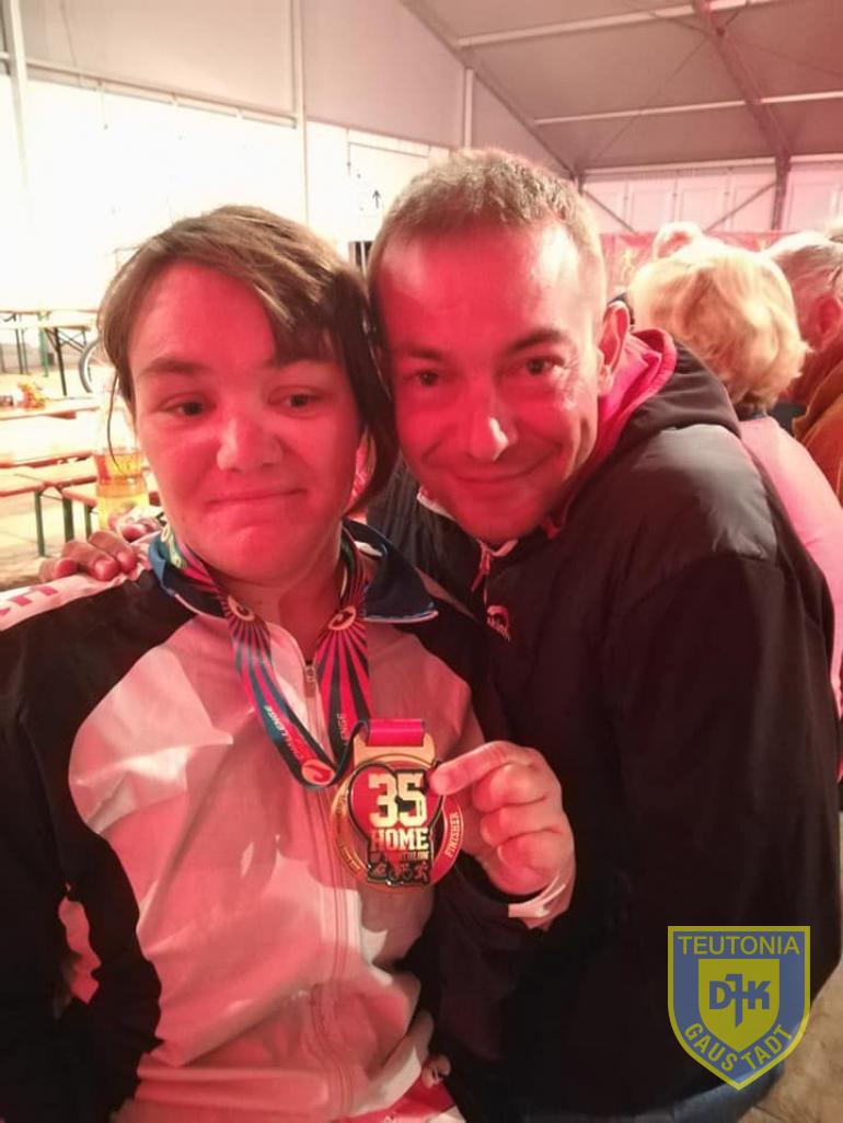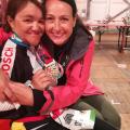 Mit etwas Verspätung fuhr ich dann Dienstagvormittag nach Roth, denn erholen konnte ich mich auch dort. Ab Mittwoch wurde es dann Stück für Stück besser und am Donnerstag viel die Entscheidung zum Start. Mit einer Bekannten holte ich die Startnummern ab. Am Samstag gab es dann gemeinsam mit Yvonne den VIP Check in. J - Jetzt gab es kein Zurück mehr. Der Sonntag begann früh um 2:30 Uhr klingelte der Wecker und es hieß fertig machen für den großen Tag. Gemeinsam mit Sabine machte ich mich auf dem Weg zum Shuttel Bus. Dort angekommen, gab es noch ein schnelles Foto mit Laura Sidall die ebenfalls den Shuttel nutzte. In der Wechselzone angekommen hieß es letzte Vorbereitungen treffen und dann war er auch schon da der Startschuss. Gemeinsam mit den Profi Damen ging es auf die 3,8km im Main Donau Kanal. War das Schwimmen noch solide, wurde das Radfahren schon zu Beginn zum Kampf und ich überlegte mehrmals auszusteigen. Aber irgendwie schaffte ich es in die Wechselzone 2 und von dort auf den Marathon, der allerdings auch Erst einmal überhaupt nicht lief zwischen km 8 und 15 lief es dann wieder zumindest solide und ich schöpfte Hoffnung. Bei Km 15 musste ich mich dann leider Übergeben und ab diesem Zeitpunkt ging gar nichts mehr. Dank der Weltbesten Supporter Crew ging es aber Kilometer für Kilomter weiter und Axel zwang mich bei jedem Kilometer zumindest etwas Gel zu schlecken. Endlich war dann der Kanal geschafft und es ging nach Roth wo wir von Kampfrichtern angehalten wurden, die mich aus dem Rennen nahmen. Da ich aber wie schon gesagt die Welt Beste Supporter Crew hatte konnte ich guten Gewissens unterschreiben, dass ich auf eigene Verantwortung weiterlaufe. So ging es auf die wohl dunkelsten und hügeligsten Kilometer des Tages nach Büchenbach. Nach unendlichen Kampf durfte ich dann zusammen mit meiner Familie und meinen Supportern ins leere Stadion einlaufen. Im Ziel wartete dann noch eine Überraschung auf mich. Der Athleten Service  stand noch ein letztes mal  Spalier und Felix überreichte mir meine Medaille in diesem Moment konnte ich die Tränen nicht mehr zurückhalten.