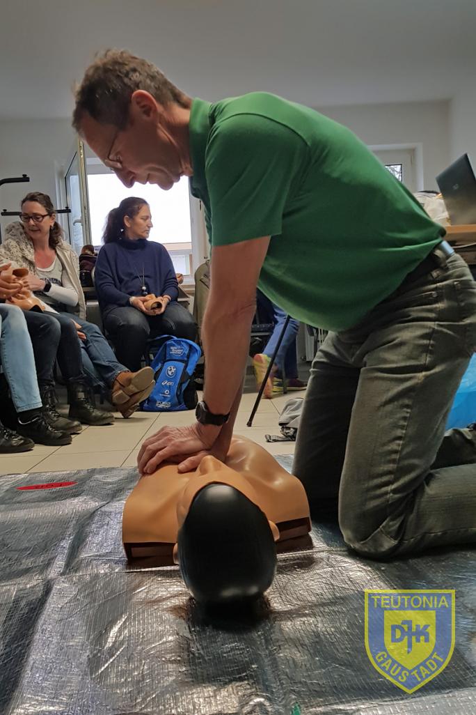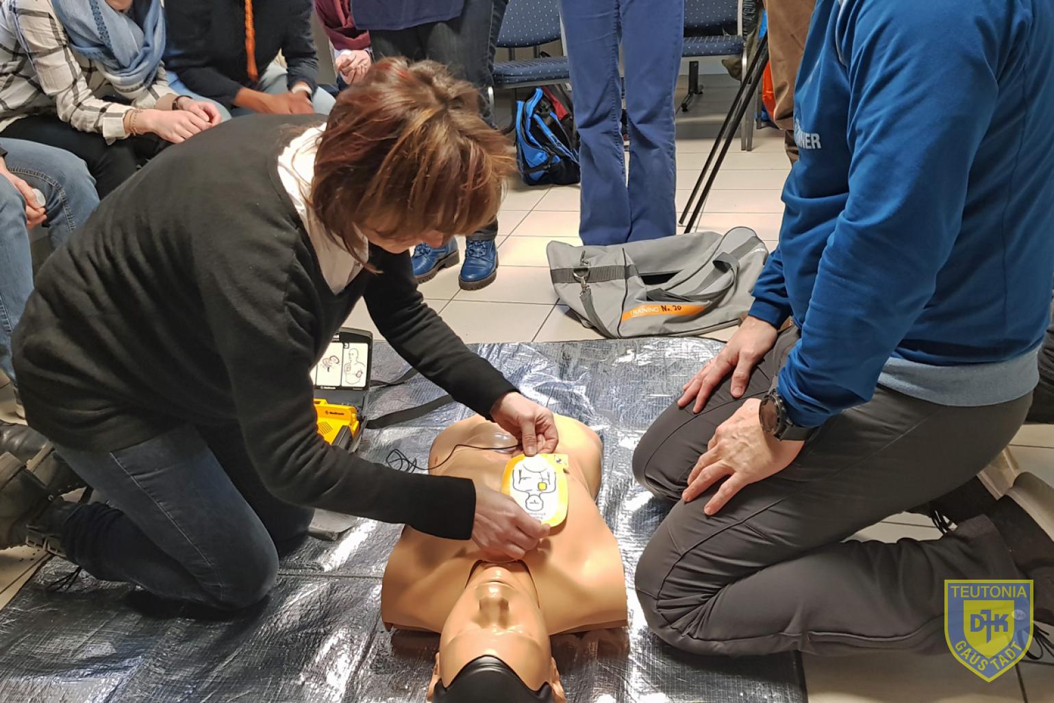 Am zweiten Januarwochenende führten wir im Vereinsheim einen Erste-Hilfe-Kurs durch. Wir legen Wert auf gut ausgebildete Übungsleiter und Verantwortliche und freuten uns, dass wir von unserem Mitglied Bernd Eichberger die Erste-Hilfe-Ausbildung erhielten. Da sich alle Teilnehmer gut kannten, war es auch für Bernd angenehm die Themen mit uns durchzuarbeiten. Es fand sich immer ein Demonstrationsopfer und bei der Rettung gab es auch viel Spaß in der Gruppe. Nun haben wir unser Wissen über die stabile Seitenlage, HLW (Herz- / Lungenwiederbelebung) und Verbände anlegen wieder aufgefrischt. Hoffentlich müssen wir das Erlernte nie anwenden, aber wenn der Fall eintritt, sind wir gut vorbereitet. Im Wasser (durch unsere Rettungsschwimmerausbildung) und an Land können wir nun bei Notsituationen helfen.