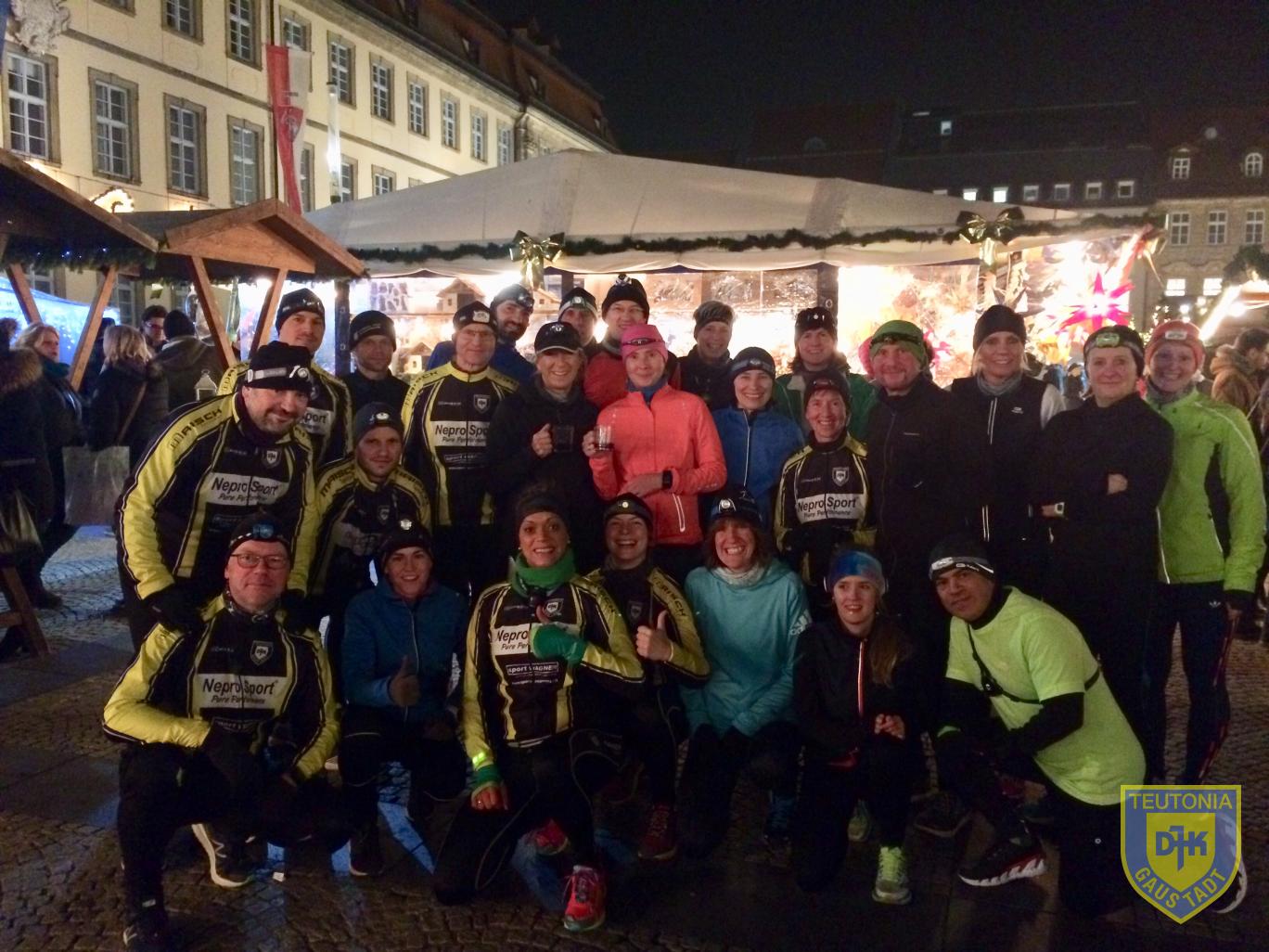 Die dunkle Jahreszeit steht vor der Tür. Gerade in der hektischen Vorweihnachtszeit ist es eine schöne Tradition, dass der Lauftreff zum Weihnachtsmarkt am Maxplatz läuft und bei der DJK-Tankstelle (Glühweinstand von Raimund Meister) halt macht.
