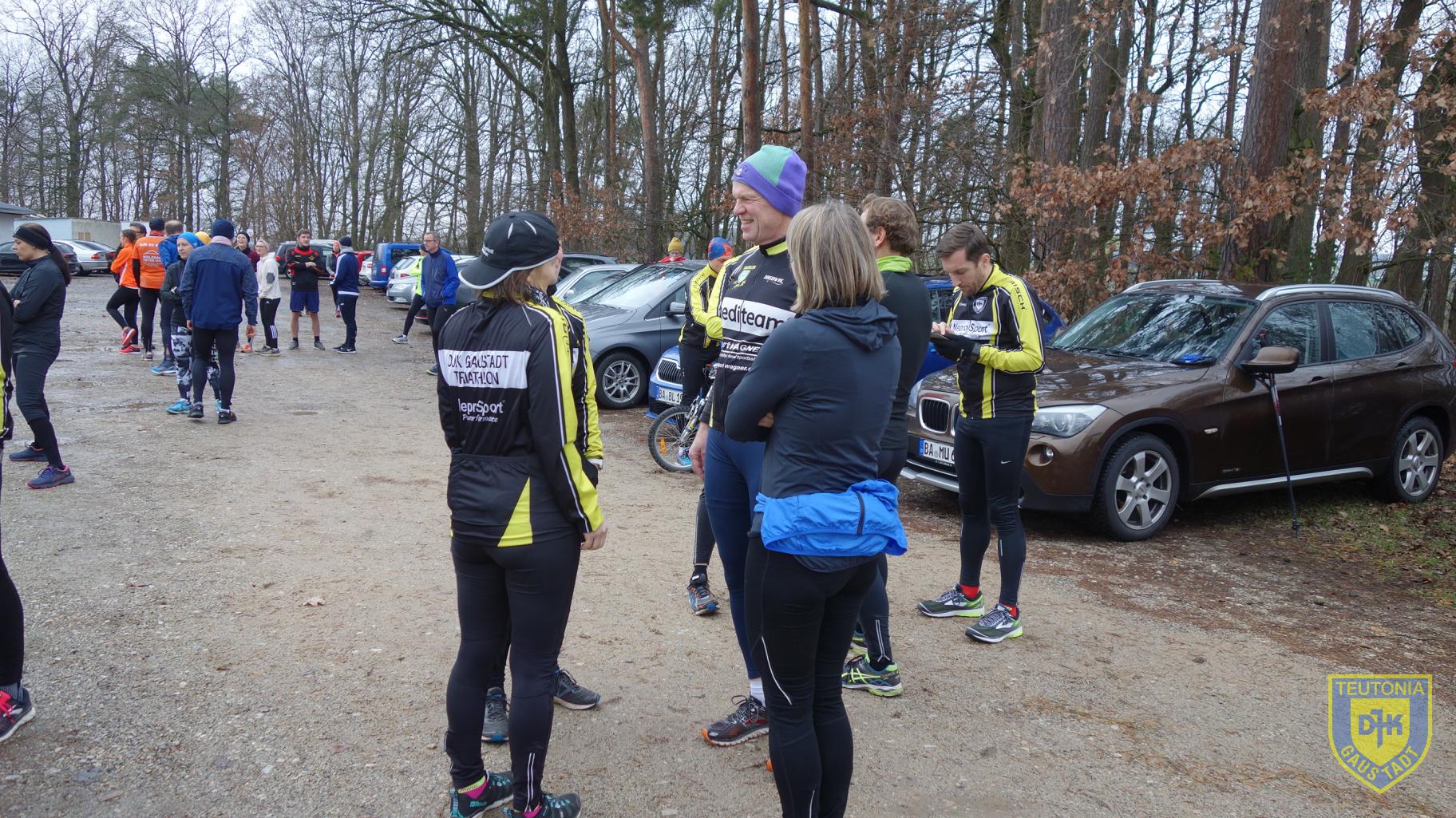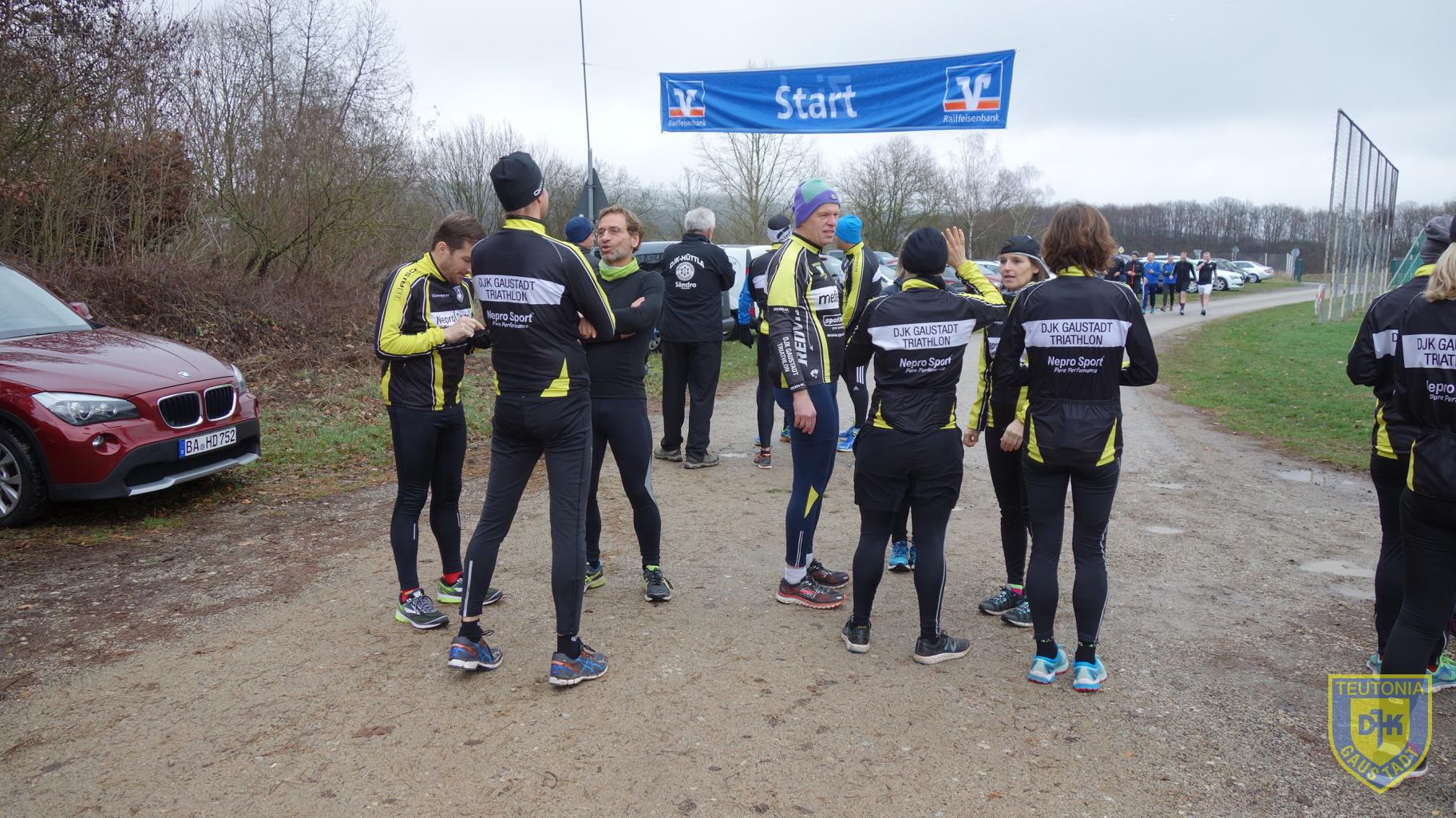 Ca. 200 Teilnehmer machten sich um 14 Uhr auf den Weg. Die Bedingungen waren für einen Lauf ideal, 8 Grad Lufttemperatur und kein Regen. Die Strecke führte über Asphalt- und Feldwege durch die hügelige Landschaft zwischen Untergreuth und dem Sportgelände. Bei Kilometer 2,3 zweigte die kürzere Strecke nach rechts ab. Die Streckenabsicherung übernahm die Feuerwehr, ein Verlaufen war nicht möglich. Im Ziel wartete auf die Teilnehmer ein beheizter Zeltanbau am Gebäude, in dem Kaffee, Kuchen, Glühwein, Bier und Würstchen zu günstigen Bedingungen angeboten wurden.