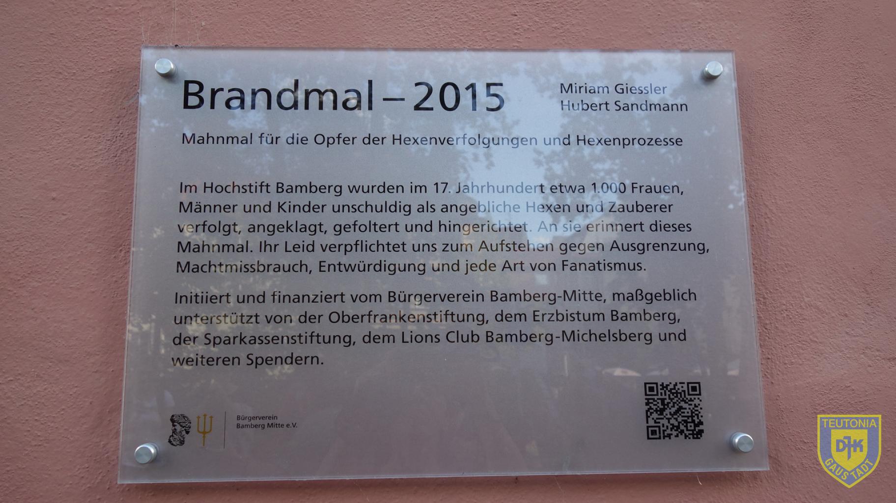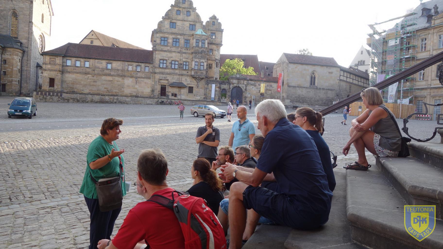 Dass wir uns nicht ausschließlich mit Sport beschäftigen, zeigten die DJK’ler am Samstag. Geführt von Frau Dr. Ewa Herber nahmen wir an der Stadtführung „Feuertod und Hexenhammer“ teil. Wir trafen uns an der Tourist Information und liefen verschiedene Stellen in der Altstadt an. Leider gibt es zu dem Thema kaum sichtbare Überreste aus der Zeit um 1600, doch schriftliche Überlieferungen sind reichlich vorhanden. Zwischen 1595 und 1631 wurden in Bamberg und Zeil fast 1000 Männer und Frauen hingerichtet. Frau Dr. Herber erklärte uns die Zusammenhänge und den Ablauf der Hexenprozesse, die Örtlichkeiten und Folterwerkzeuge. Jeder von uns war sicher froh, nicht in dieser Zeit gelebt zu haben. Die 2 Stunden vergingen wie im Fluge und nach der Führung besuchten wir noch den Spezi-Keller, von dem wir einen herrlichen Sonnenuntergang beobachten konnten.