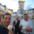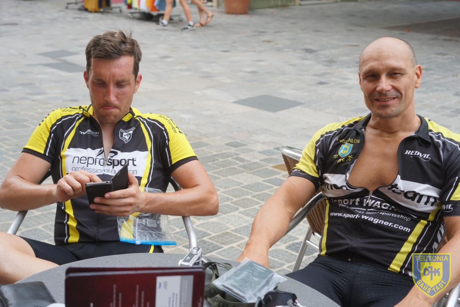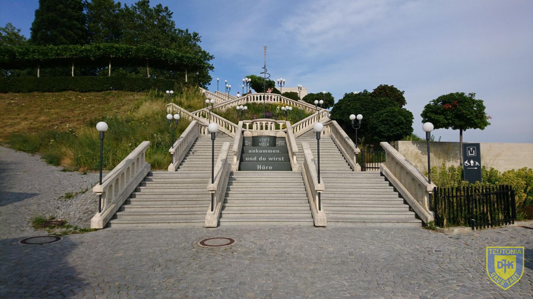 Nach einer erholsamen Nacht genossen wir in aller Gemütlichkeit das nicht ganz so umfangreiche aber trotzdem gute Frühstück und machten uns für die dritte Etappe bereit. Wie verabredet trafen wir Ole an unserem Hotel gegen halb zehn und rollten los. Heute ging es nach Melk. Auch heute wieder der erste Stopp nach nur 20 km. Wir verließen den Donauradweg in Richtung Norden. Eine kleine Anhöhe stelle sich uns in den Weg, die zwar kurz war, uns aber mit rund 14 % Steigung einige physische Kräfte abverlangte. Oben angekommen türmten sich die Mauern eines Reliktes aus dunklen Zeiten auf: Die KZ-Gedenkstätte Mauthausen. Der Besuch in der recht gut erhaltenen Anlage nagte auch ein wenig an den psychischen Kräften. Unvorstellbar aus unserer heutigen Sicht, was Menschen hier anderen Menschen vor mehr als 70 Jahren angetan haben. Ein Moment des Innehaltens, der uns weit weg katapultierte. Ein Schwarm Schwalben kreist immer wieder über die Mauern und die Türme hinweg. Einmal ein Vogel sein, wie viele Mensch an dieser Stelle diesen Gedanken wohl schon hatten? Irgendwann sind wir dann weiter, weg von diesem Ort, wieder runter an die blaue Donau. Der bisher eher leere Radweg wurde von jetzt an stetig voller, die Symphonie von vier Fahrradglocken gepaart mit dem Ausruf „rechts fahren!“ wurde zum Dauerbegleiter im Ohr der vier Teutonen. Kurze Mittagsrast in Grein nach ca. 60 km. Irgendwann tauchte dann von Weitem die Silhouette des Stifts Melk auf. Als Handlungsort in Umberto Eccos Roman „Im Namen der Rose“ weltberühmt und durchaus eindrucksvoll bereits von weitem. Auf dem Marktplatz in Melk angekommen trennten sich erneut die Wege zwischen uns und unseres Begleiters Ole. Wir verabredeten uns wieder, die morgige Etappe nach Wien gemeinsam zu fahren. Die Unterkunft lag nicht weit weg vom Donauradweg oberhalb von Melk. Nach einer kurzen und erfrischenden Dusche gingen wir runter in die Innenstadt. Die Hitze des späten Nachmittags begleitet uns auf dem Weg zum Stift Melk, ein beeindruckender Barock-Bau, der zum UNESCO-Welterbe gehört. Ein kurzer Streifzug noch durch den Stift-Garten, bevor die knurrenden Mägen uns zum Essen am Marktplatz überredeten. Es folgte das Übliche Prozedere der Verwirrung: Michael bestellte doppelt, Christian und Jens bestellten abwechselnd das Getränk, das der andere vorher hatte und so war die Bedienung wieder leicht sichtbar irritiert. Zum Ende gab es noch ein Eis auf dem Marktplatz mit bestem Blick auf das Stift und noch einen Absacker.