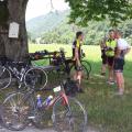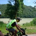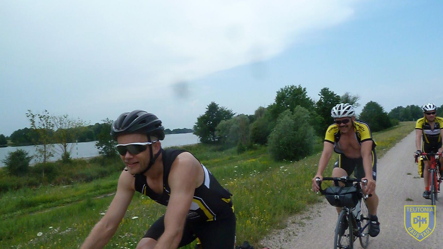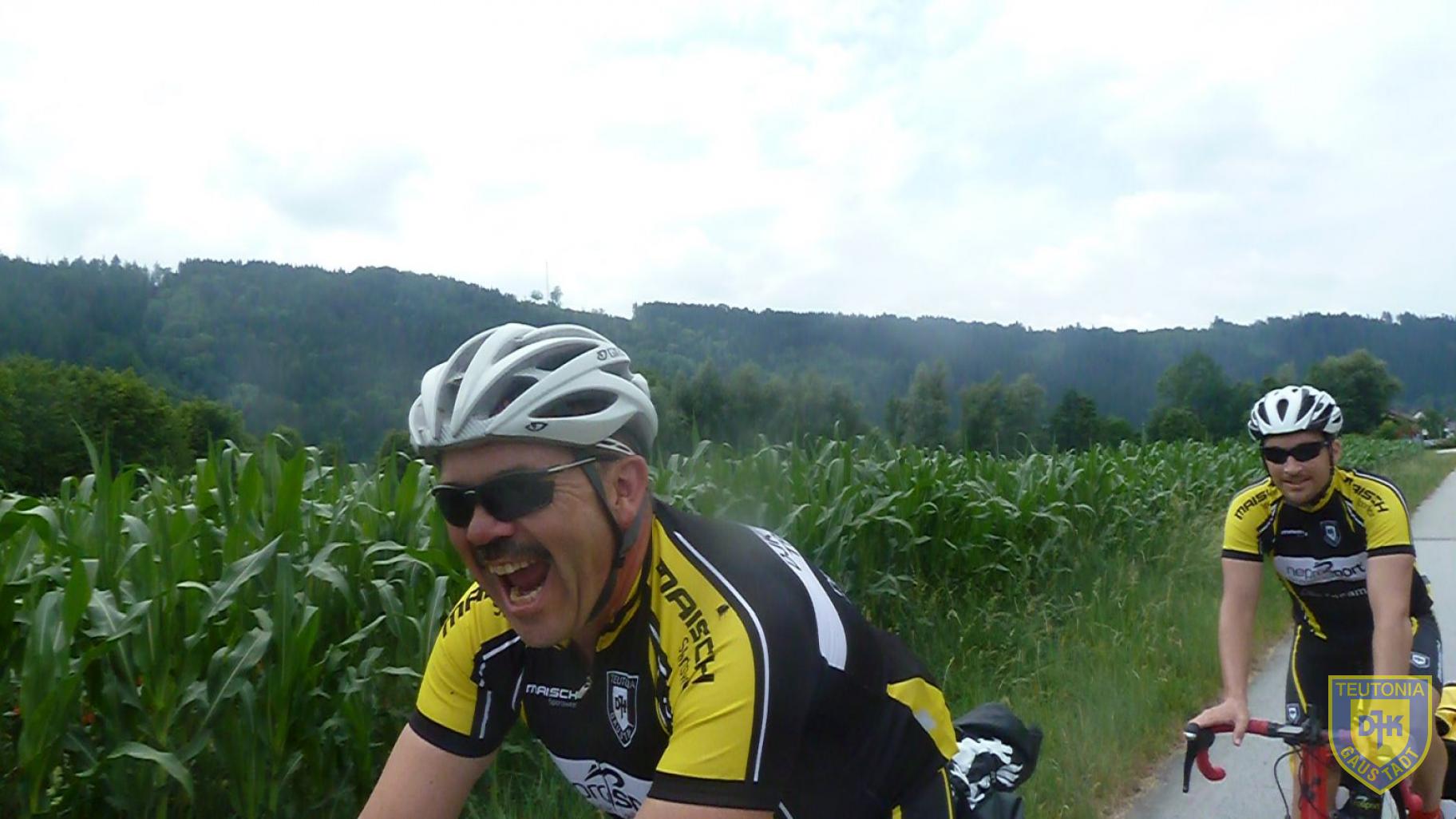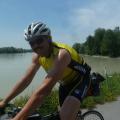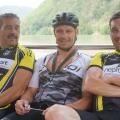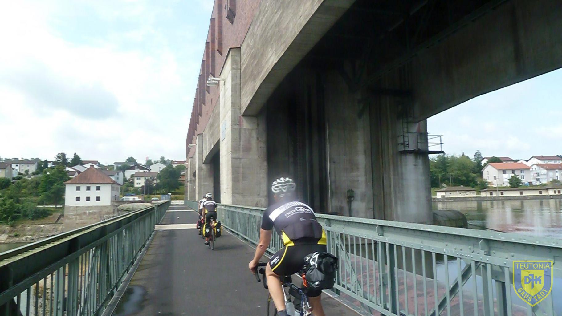 Es hatte die Nacht durchgeregnet und das Geräusch von leichtem Nieselregen am Morgen drang durch das geöffnete Fenster in den dritten Stock unserer Unterkunft. Gegen halb acht ging es runter zum gemeinsamen Frühstück. Beim Frühstücksbuffet blieb kein Wunsch offen und so ging es mit guter Stimmung weiter zur zweiten Etappe. Das knapp 125 km entfernte Linz war das nächste Ziel. Gegen 09:00 Uhr rollte der DJK-Zug an und auch der Regen hatten mittlerweile aufgehört. Bereits nach 25 km die erste kurze Pause mit obligatorischem Fototermin am Zusammenfluss der Inn, Ilz und Donau mit anschließendem Kaffee-Stopp in der Innenstadt. Wir sind mittlerweile in Passau und nach kurzem Aufenthalt ging es weiter. Die Grenzüberschreitung geschah vollkommen unwissentlich, nur an den Ortsschildern war zu erkennen, dass wir uns bereits in Österreich befinden mussten. Der Radweg hier glich einer Autobahn und lud gerade zu ein schnell zufahren. Noch vor dem Mittag machten wir dann unterwegs eine Bekanntschaft, die uns bis zum Ende der Tour erhalten bleiben sollte. Ein Rennradfahrer mit Anhänger fuhr uns voraus, offensichtlich auch recht flott unterwegs, so dass wir nicht ganz so einfach aufschließen konnten, wie mancher gedacht hatte. Mit seinem kleinen Rückspiegel hatte er uns (wie er uns später gestand und aufgrund dessen wesentlich schneller fuhr als sonst) bereits gesehen. Beim Überholen kurzer musternder Blick und weiter, nur Ralf kam kurz mit ihm ins Gespräch. Ebenfalls unterwegs nach Linz und so war der Mitfahrer gefunden. Bei der ersten Pause kamen wir dann etwas mehr ins Gespräch. Ole, 27 Jahre und Psychologie-Student aus Norwegen war doch tatsächlich mit dem Rad auf dem EuroVelo 6 unterwegs, vom Atlantik ans Schwarze Meer. Wir teilten unser Essen mit Ole und fuhren von jetzt an gemeinsam. Weiter ging es nördlich der Donau bis zur Schlögener Schlinge. Hier mussten wir das einzige mal eine Fähre nehmen, da der Radweg im Norden einfach zu Ende ging, so jedenfalls die Aussage des Fährmanns. Eine sehr schöne Unterbrechung. Nur wenige Minuten dauerte das Übersetzen und es ging gleich mit vollem Elan weiter. Gegen 16:00 Uhr erreichten wir gemeinsam Linz und unsere Wege trennten sich zunächst. Unsere Unterkunft befand sich in unmittelbarer Nähe zum Donauradweg, Ole übernachtete in der südlichen Linzer Innenstadt. Wir hatten das gleiche Etappenziel am nächsten Tag und beschlossen gemeinsam weiter zu fahren. Im Hotel angekommen die ersehnte Dusche. Auf dem Abendprogramm stand ein Besuch am naheliegenden Badesee mit anschließender Verköstigung dort. Ein obligatorischer Abstecher in die Linzer Innenstadt beendete den zweiten Tag der Tour. Das klimatisierte Hotel bescherte eine angenehme Nacht.
