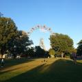 Das große Ziel naht: die letzte größere Etappe, die es mit Gepäck zu fahren galt, startete gegen halb zehn am Marillenhof in Melk. Als Vorbereitung genossen wir wieder ein hervorragendes Frühstück mit selbstgebackenen Brötchen. Die ersten Kilometer rollte der DJK-Express mit Tender wieder entlang des Donauradweges. Nach knapp einer Stunde Fahrt nährten wir uns Dürnstein. Am Nordufer gelegen thront über der Stadt die einst mächtige Burg Dürnstein, heute nur noch eine Ruine, erbaut Mitte des 12. Jahrhunderts. Ein kurzer Stopp mit obligatorischem Foto erfolgte. Jedoch anders als Richard Löwenherz wurden wir nicht zu unfreiwilligen Gästen. Herzog Leopold V. bzw. Hadmar II. hielten den Englischen König auf seiner Rückkehr vom Dritten Kreuzzug dort gefangen und lieferten diesen später an Kaiser Heinrich VI. aus. Eine Festungshaft blieb uns allerdings glücklicherweise erspart. Nach einer kurzen Hast, bei der Jens und Ole vom DJK-Tross abrissen, kehrten wir zum Mittag in die Bärndorferhütte am Fuße des Atomkraftwerkes Zwentendorf ein. Das AKW wird als die größte Investitionsruine Österreichs bezeichnet, denn es ging tatsächlich nie in Betrieb. Somit mussten wir uns auch keine Sorgen machen und konnten entspannt das Essen genießen. Die Kilometer flogen weiter an uns vorbei, bis wir nach knapp 110 Kilometer einen letzten Stopp kurz vor Wien einlegten. Wir verabschiedeten uns bereits von unserem Begleiter, der am selben Tag noch ein paar Kilometer fahren wollte. Von Norden her rollten wir dann nach Wien ein, ohne direkt zu wissen, dass wir bereits da waren. Es fehlte das Ortsschild auf dem Radweg, so dass wir bereits mitten in Wien zum Halten kamen. Die nun endgültige Verabschiedung von Ole war dann doch irgendwie merkwürdig, hatte er uns doch jetzt fast 3 Tage und 300 km begleitet. Aber Wege trennen sich und Bamberger wissen es: Man sieht sich immer zweimal. Zur Überbrückung der Schlüsselübergabe der Unterkunft genossen Christian, Michael und Ralf einen kurzen Sprung in die Donau, während Jens bei den Fahrrädern ein wenig döste. Eine Zwei-Zimmer-Wohnung im sechsten Stock mitten in der Wiener Donaustadt diente als Unterkunft, die Räder parkten auf den zwei angeschlossenen Balkonen. Getreu Reinhard Fendrichs Hit „Haben sie Wien schon bei Nacht gesehen, haben sie das schon erlebt?“ war der Plan für den Abend geschmiedet: Essen im nahegelegenen Donau Zentrum und danach mit der U-Bahn zum Stephansplatz. Ein kurzer Rundgang durch die Wiener Innenstadt, vorbei am Stephansdom, der Wiener Hofburg sowie der Österreichischen Nationalbibliothek zur Albertina endete dann mit einem Radler aus der Dose auf einer Parkbank mitten in der Wiener Innenstadt, durchaus stilvoll.