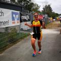 Die 1,5 km Schwimmen liefen super, nach knapp 26 Minuten wechselte ich aufs Rad. Mit dem Rest war ich allerdings nicht ganz zufrieden. Es ging auf die bereits gewohnte wellige Radstrecke, nur bekam ich keinen Druck aufs Pedal. Wohl nicht mein Tag… Auf Runde eins gab es einen schönen Abschnitt, um ordentlich Geschwindigkeit aufbauen zu können. Aber ausgerechnet jetzt waren zwei Traktoren mit Anhängern unterwegs, die die gesamte Strecke (die nicht abgesperrt war) brauchten und dann auch noch ebenfalls abgebogen sind. Also erst einmal Stillstand, sehr ärgerlich. Runde zwei lief dann jedoch besser und ich war entsprechend warm. Nun ging es auf die Laufstrecke, ich konnte wie gewollt einen 4er Schnitt anlaufen, aber bekam dann nicht richtig Luft. Irgendwas an meiner Rumpfmuskulatur verspannte. Nach zwei Runden auf halber Flamme habe ich es mit leichtem Massieren einiger Maßen in den Griff bekommen und wurde auch von Runde zu Runde schneller. Im Ziel angekommen habe ich mich trotz alldem um drei Minuten verbessert gegenüber dem Vorjahr und konnte den zweiten Platz in meiner Altersklasse mitnehmen.