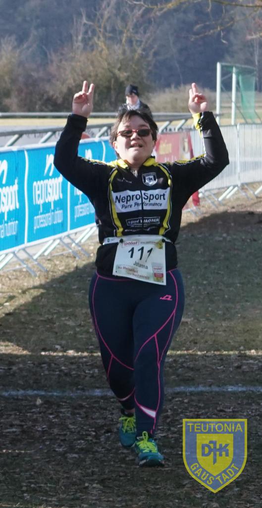 Nachdem alle - vom unermüdlichen Stadionsprecher immer wieder in die nächste Runde gepusht - wohlbehalten im Ziel angekommen waren, stellte sich Judith wenig später der bayerischen Crosslaufkonkurrenz. Sie musste noch eine Runde mehr absolvieren und kam mit blau gefrorenen Beinen, aber mit ihrer Zeit sichtlich zufrieden, im Ziel an.
