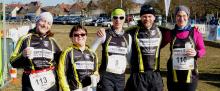 Sandra, Johanna , Michaela und ich starteten im offenen Lauf. Heike übernahm die bildliche Dokumentation der Strapazen. Der Kurs ging über 4 Runden über insgesamt 5000 m. Der Boden war teilweise noch leicht gefroren und mit einigen Strohhürden gespickt und auch aufgrund der zahlreichen Wellen und Kurven nicht leicht zu laufen.
