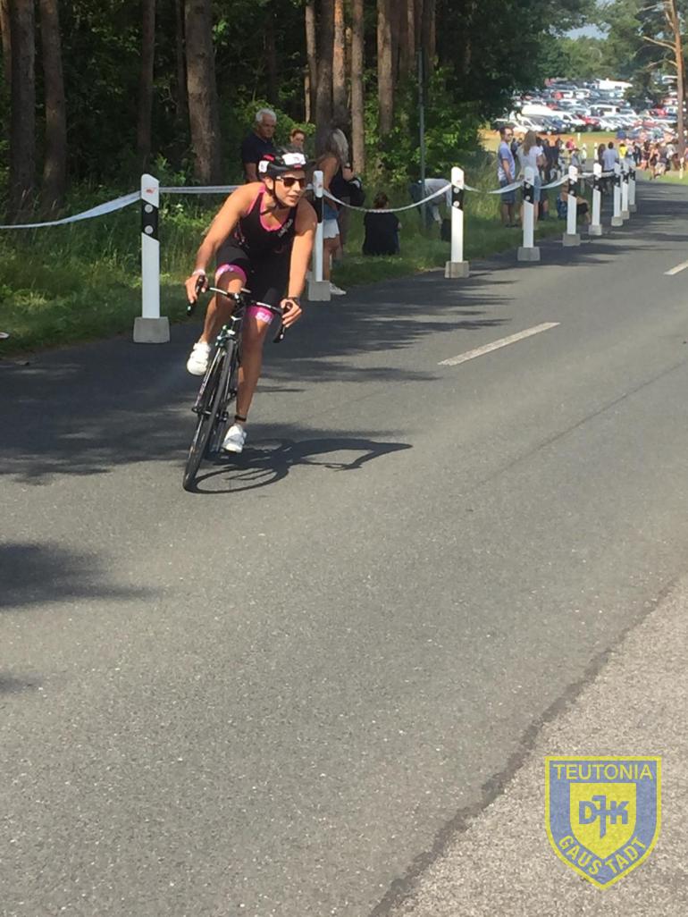 Der Wechsel aufs Rad verlief relativ störungsfrei. Wenige Sekunden vor mir gingen 2 sehr gute Freundinnen von mir auf die Radstrecke. Mein Ziel war es jetzt dranzubleiben. Die wellige 42 km lange Radtrecke hat wahnsinnig Spaß gemacht. Wir 3 Freundinnen wechselten laufend die Führungspositionen und pushten uns so zu individuellen Top Radzeiten und kamen nur mit geringen Zeitabständen zum 2. Wechsel.