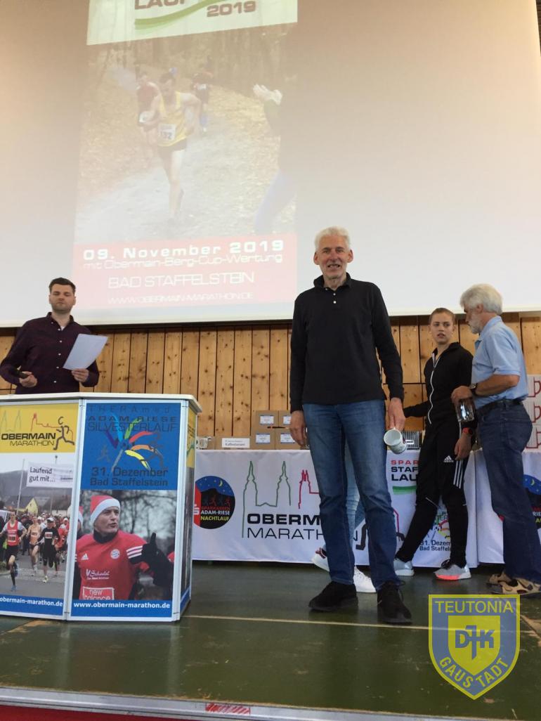 Bei Kaffee und Siegerehrung endete der schöne Vormittag und Lauf und so konnte unser Manfred ein Plätzchen auf der Tribüne und den 2. Platz seiner AK im 12,5 KM Lauf ergattern.